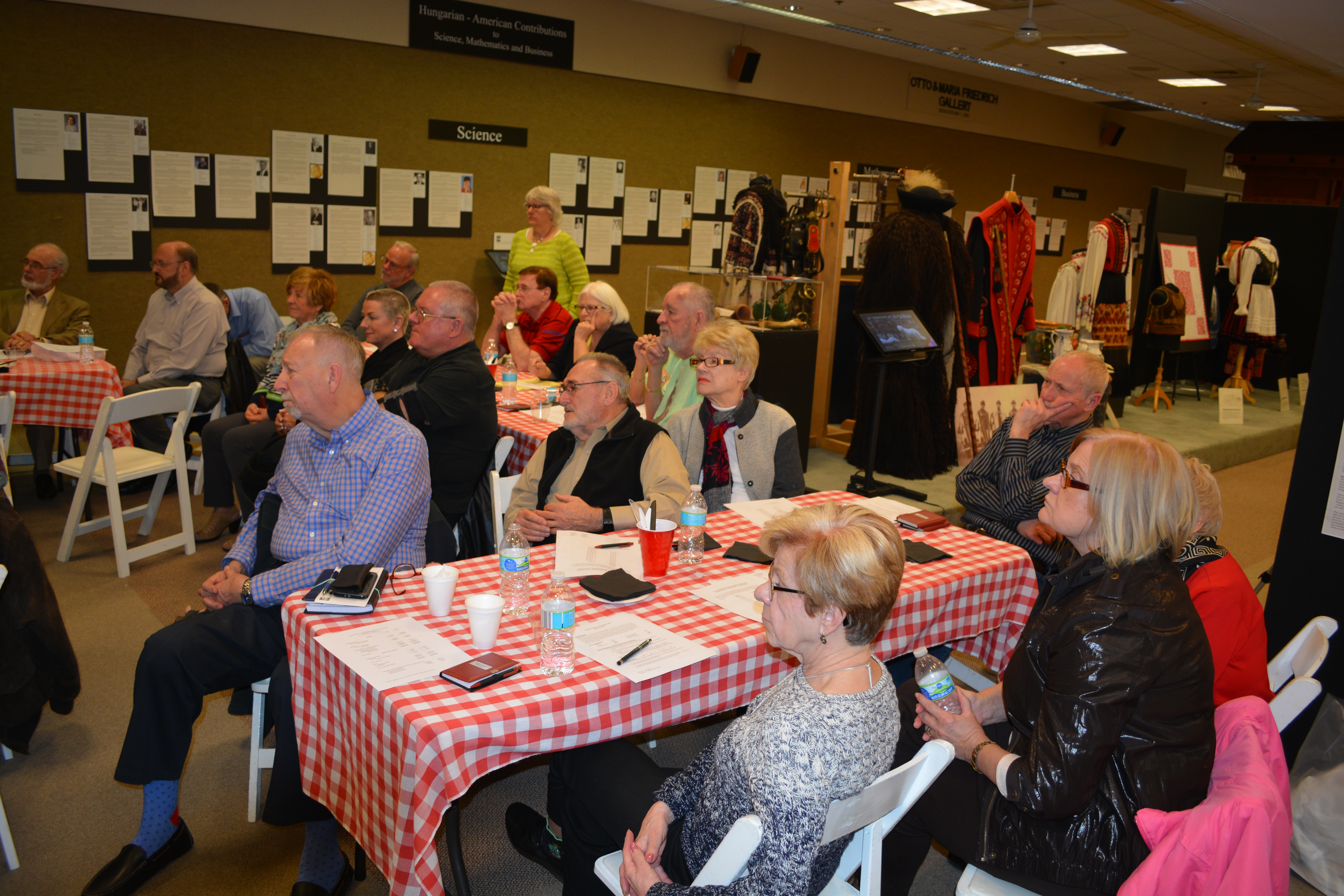 The Annual Meeting of the Cleveland Hungarian Heritage Society (CHHS) was held on Wednesday, April 24, 2019 in the Hungarian Heritage Museum located in the Galleria at Erieview. Andrea Lazar served as Elections Chairman and called upon certain officers and advisors of the CHHS to give their reports to the membership. President Alex Kezdi, Vice President Eva Szabo, Treasurer Hajnal Kezdi, Exhibits Director Andrew Lazar, Chair of Investments Elmer Meszaros, and Chair of the New Beginnings Campaign Ted Horvath presented their reports either in person or by in writing.