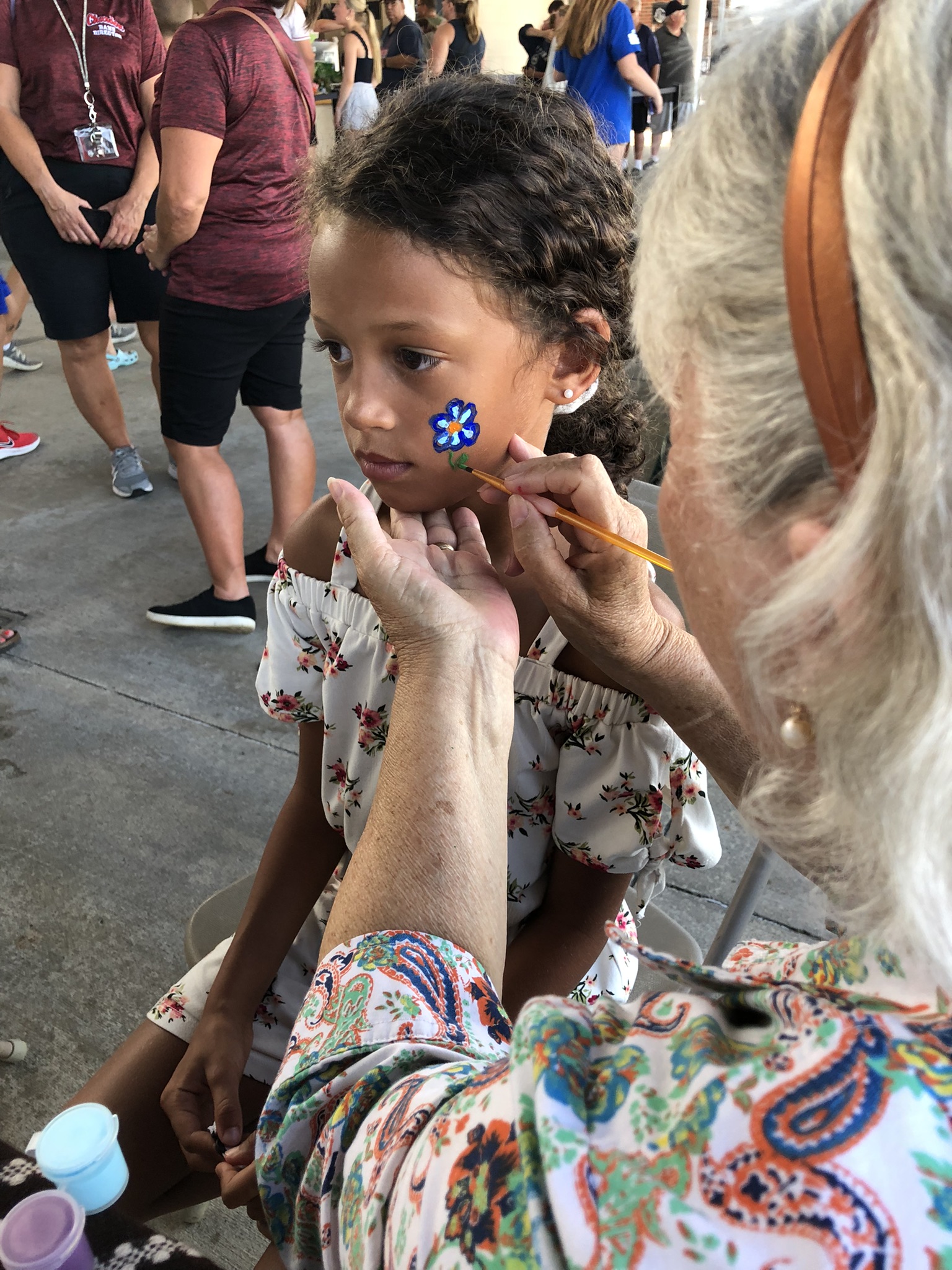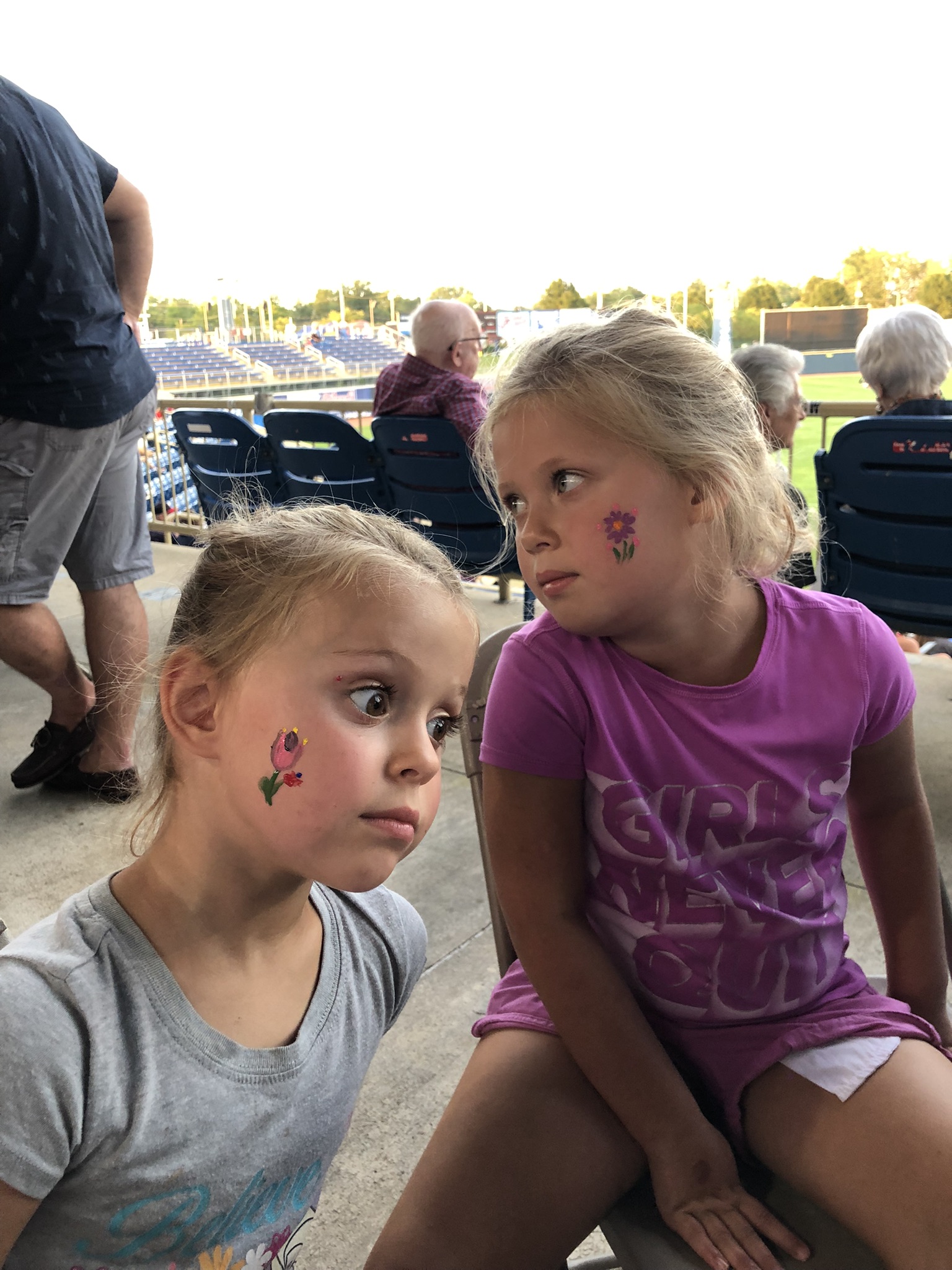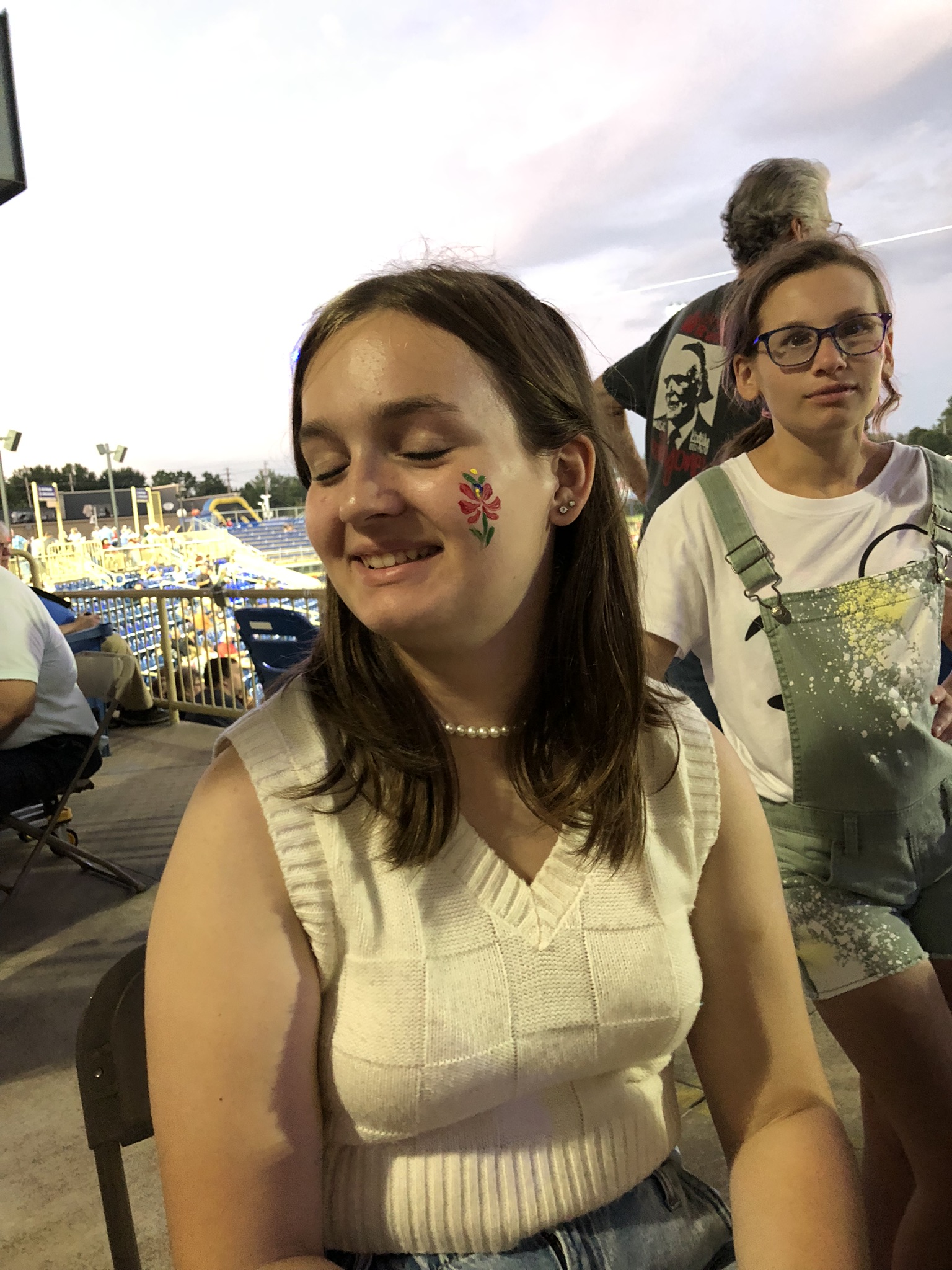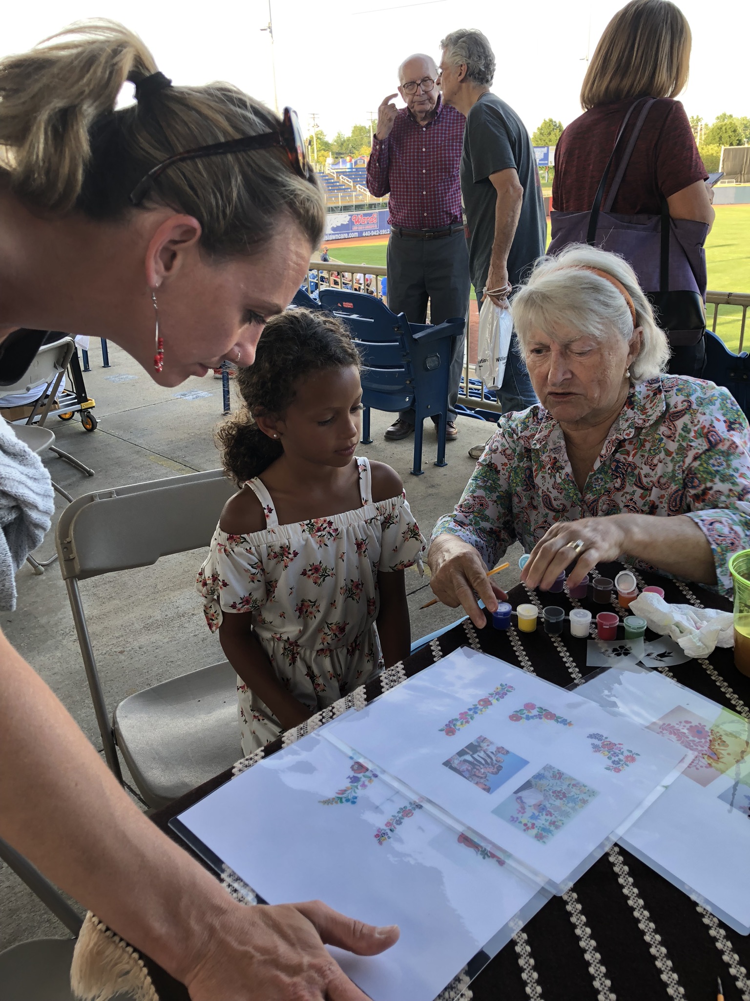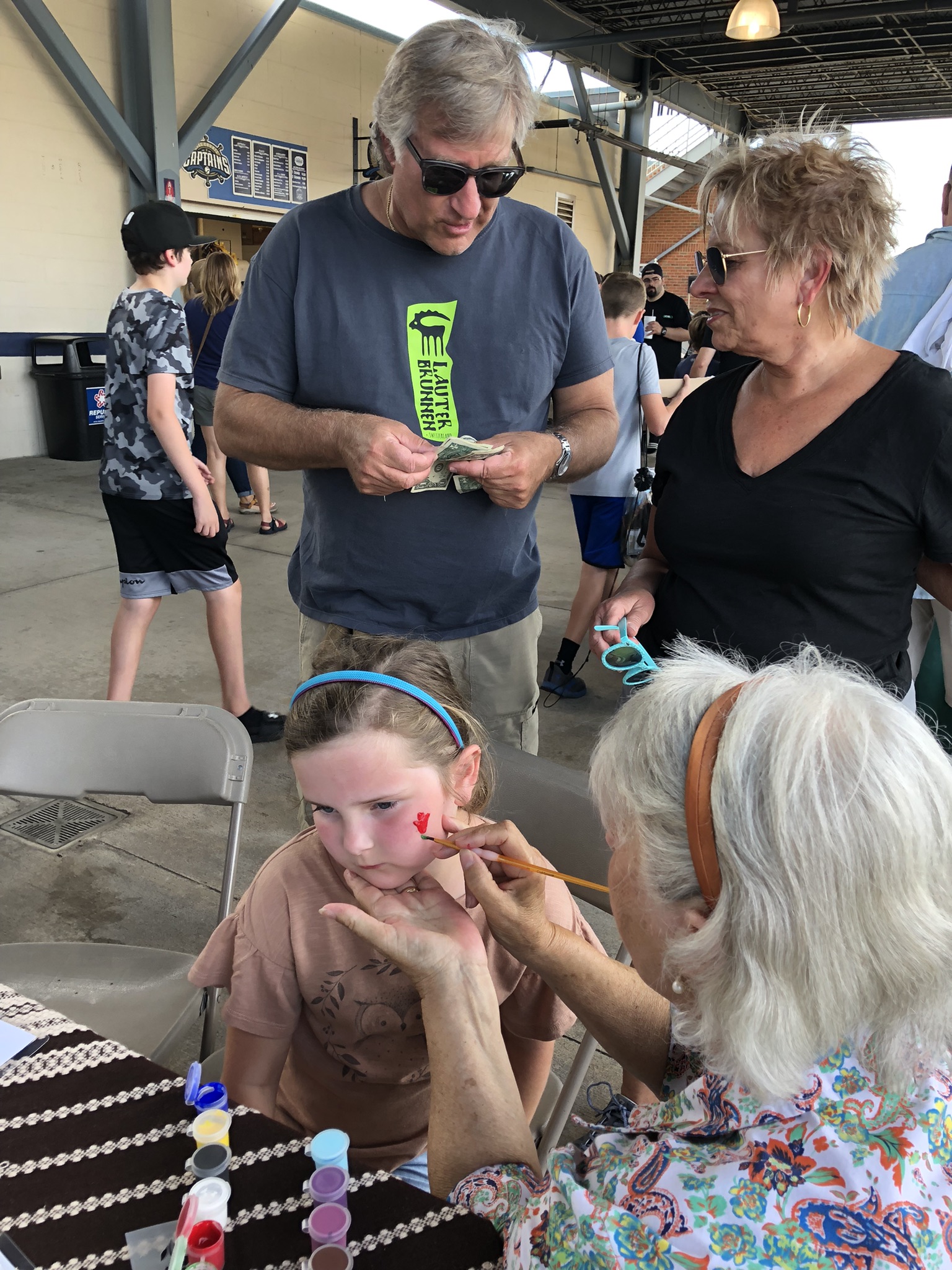 August 5th, Friday night, proved to be a great night at the Captains’ Ballpark in Eastlake…it did not rain, a soft breeze was blowing over the ballpark, the Hungarians were well-represented, and the Captains won the ballgame in extra innings!! During the game the Museum hosted many children as we painted faces with Magyar folk motifs, but we also painted names on arms and cheeks written in ancient Hungarian runic letters called “rovás írás”. A special shout-out to the Magyar Club of Fairport Harbor who arrived in matching t-shirts! It was wonderful working with our Mary Jane Molnár who was wearing her hat as president of the Hungarian Cultural Center of Northeast Ohio and Richard Sárosi who is on the Board of the William Penn organization. Our three organizations have been a part of this event for many years. To see the Magyar colors on the stadium’s jumbotron screen as we sang the Hungarian National Anthem was a particularly moving moment. For more photographs of this special evening, , click “Read More”.