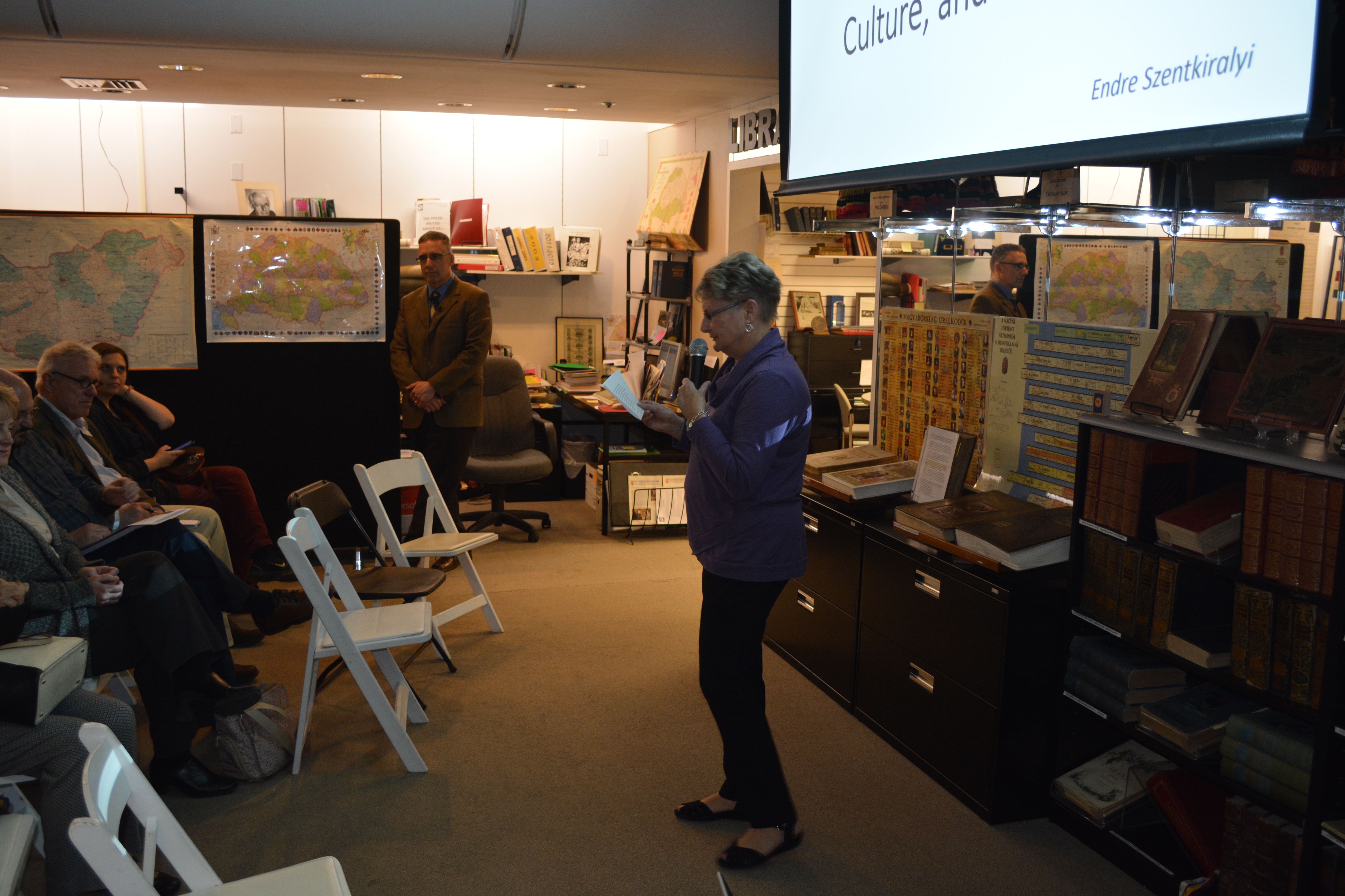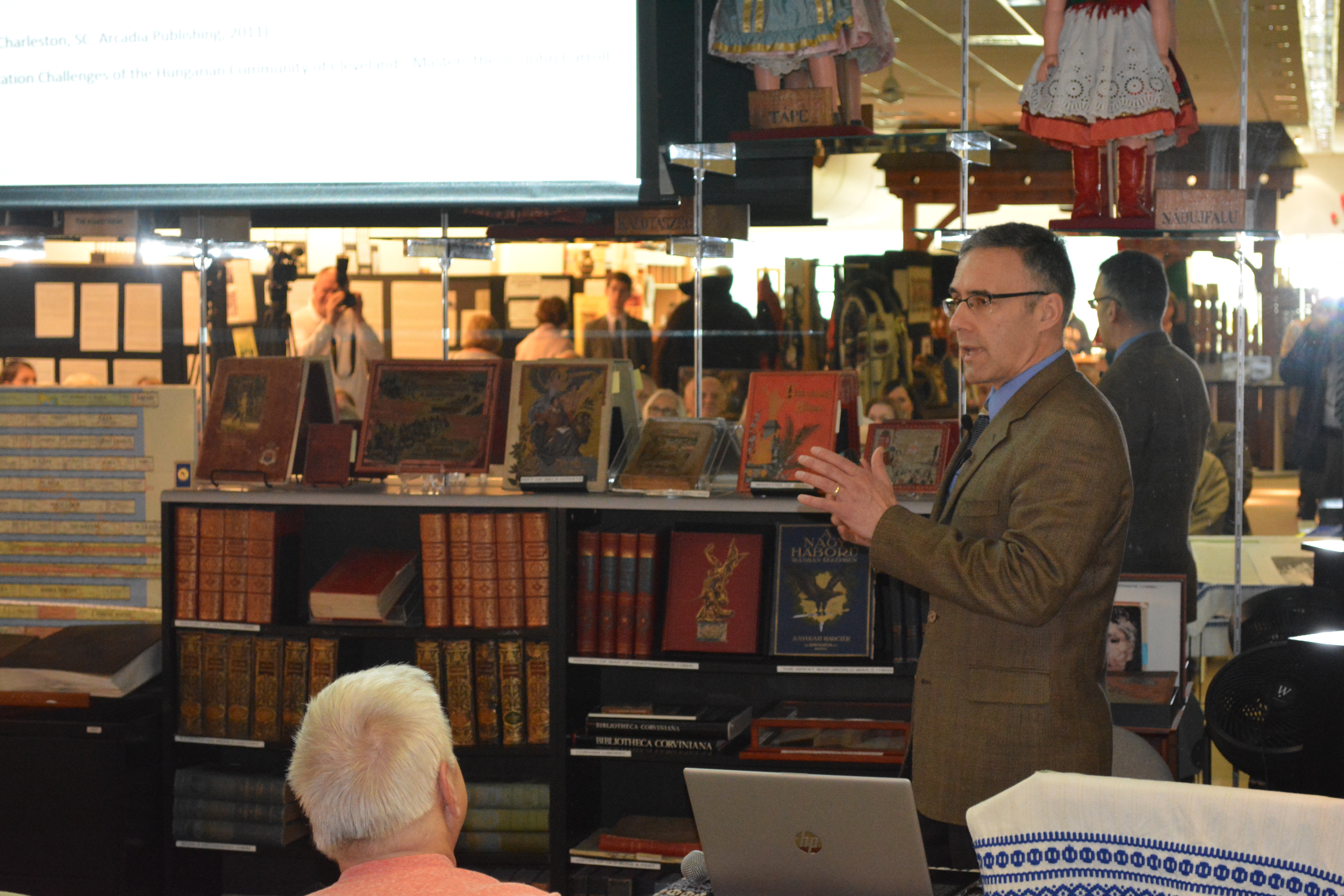 Dr. Endre Szentkiralyi’s presentation on “Being Hungarian in Cleveland” was well attended and gave the audience a detailed look into the lives of Hungarian-Americans in Cleveland. Starting with a summary of the Hungarian immigrant waves into the Cleveland area, Dr. Szentkiralyi traced the contributions of each wave of immigrants, beginning with the earliest generations, up to an including Hungarian-American life in Cleveland as we currently know it. He then focused his presentation on the post World War II immigrants. This generation of Hungarians who came to Cleveland left a rich Hungarian cultural legacy which continues to feed our Hungarian community life in Northeast Ohio. By building onto the existing Hungarian institutions, the so-called DP generation ensured that many cultural institutions remain intact to this day. They established many new organizations to further support their values and commitment to promote the culture and language of their native land. With many photographs of Hungarian-American life, including the early immigrant times, along with statistics based on extensive research, the program captured the attention of our audience which was made up of varying generations of Hungarian-Americans. Everyone recognized a part of their Hungarian experience as they live it on these shores of Lake Erie.
