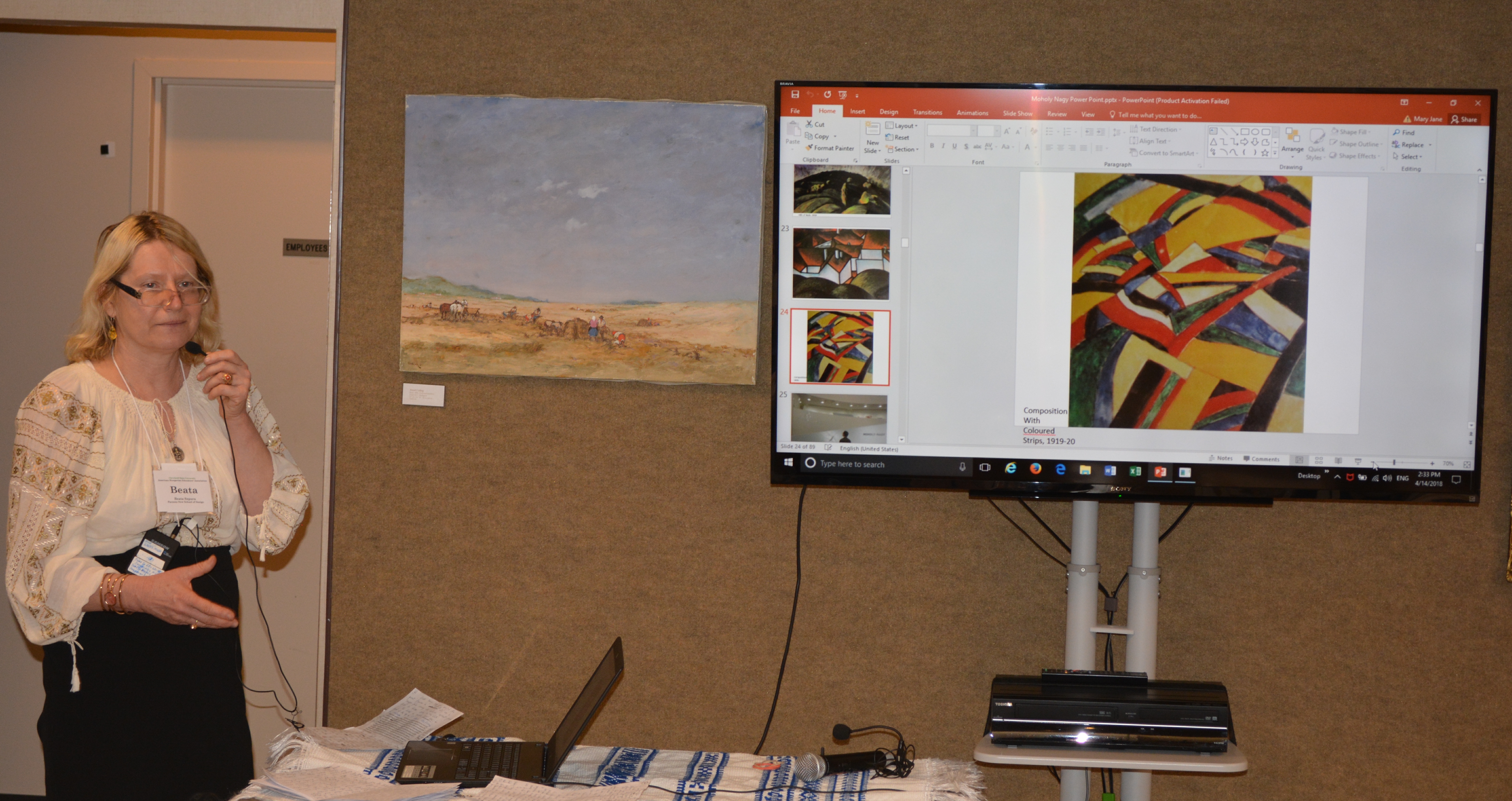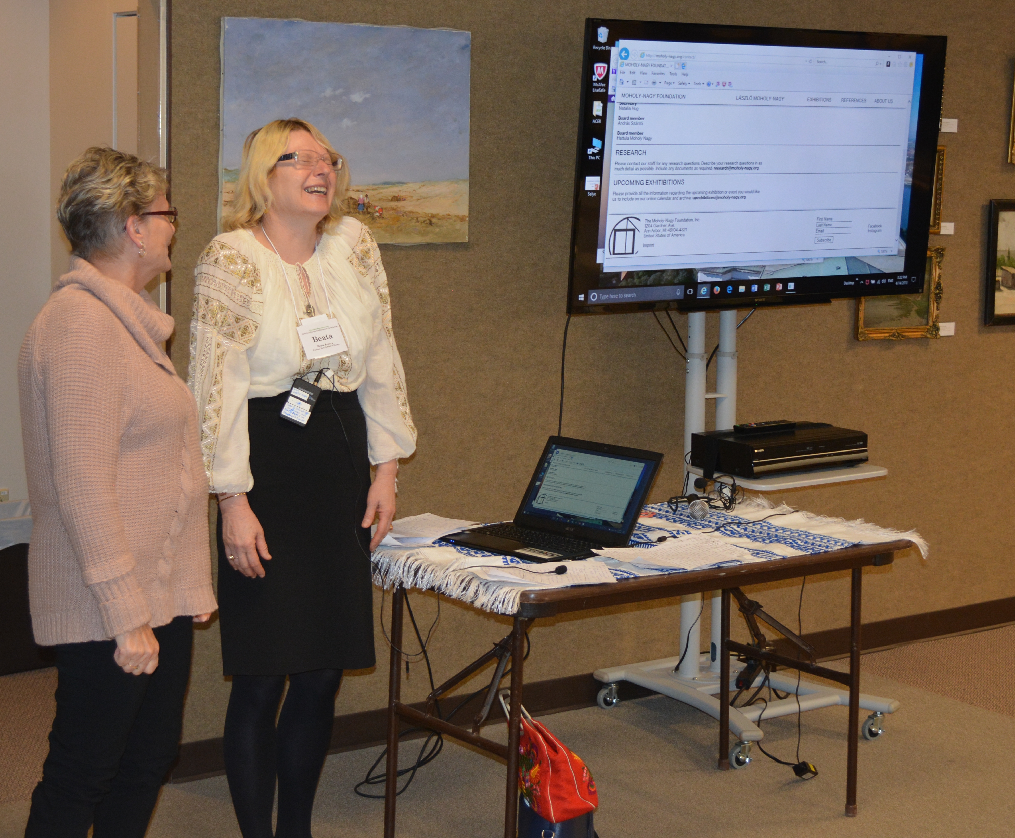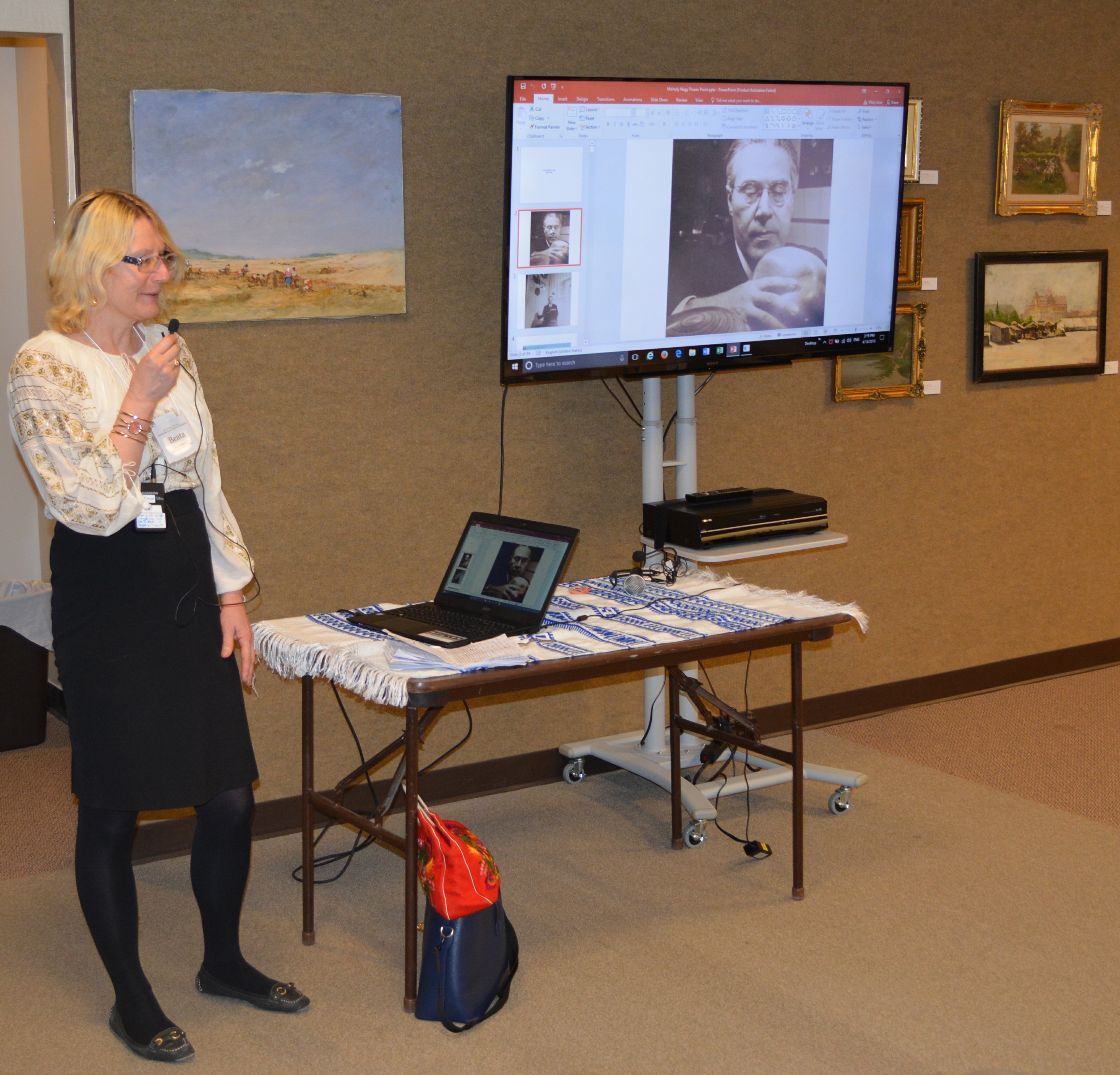 On Saturday, April 14th, our guests were treated to an outstanding presentation by Ms. Beata Szpura, a fine artist and illustrator, who teaches painting and color theory at Parsons the New School for Design in Manhattan, and drawing and painting at Queensborough Community College, New York. Ms. Szpura brought her extensive knowledge about the art of the Avant Garde, as she introduced us to the complexity of László Moholy-Nagy’s creative personality. László Moholy-Nagy (1895-1946) was a major creative force among the 20th century artistic avant garde ̶ first in Europe and later in the USA. He is famous for constantly experimenting with new media-using photomontages, photograms, collages, oil painting, film and shadow-casting kinetic sculpture. Ms. Szpura had many illustrations to complement her presentation, and the audience truly felt that they had been enriched by her insight into the art of Moholy-Nagy. After her presentation, our guests were able to engage in conversation with Ms. Szpura, and a lively give and take on art, Polish-Hungarian relations, and the academic world of art flowed around the refreshment table.