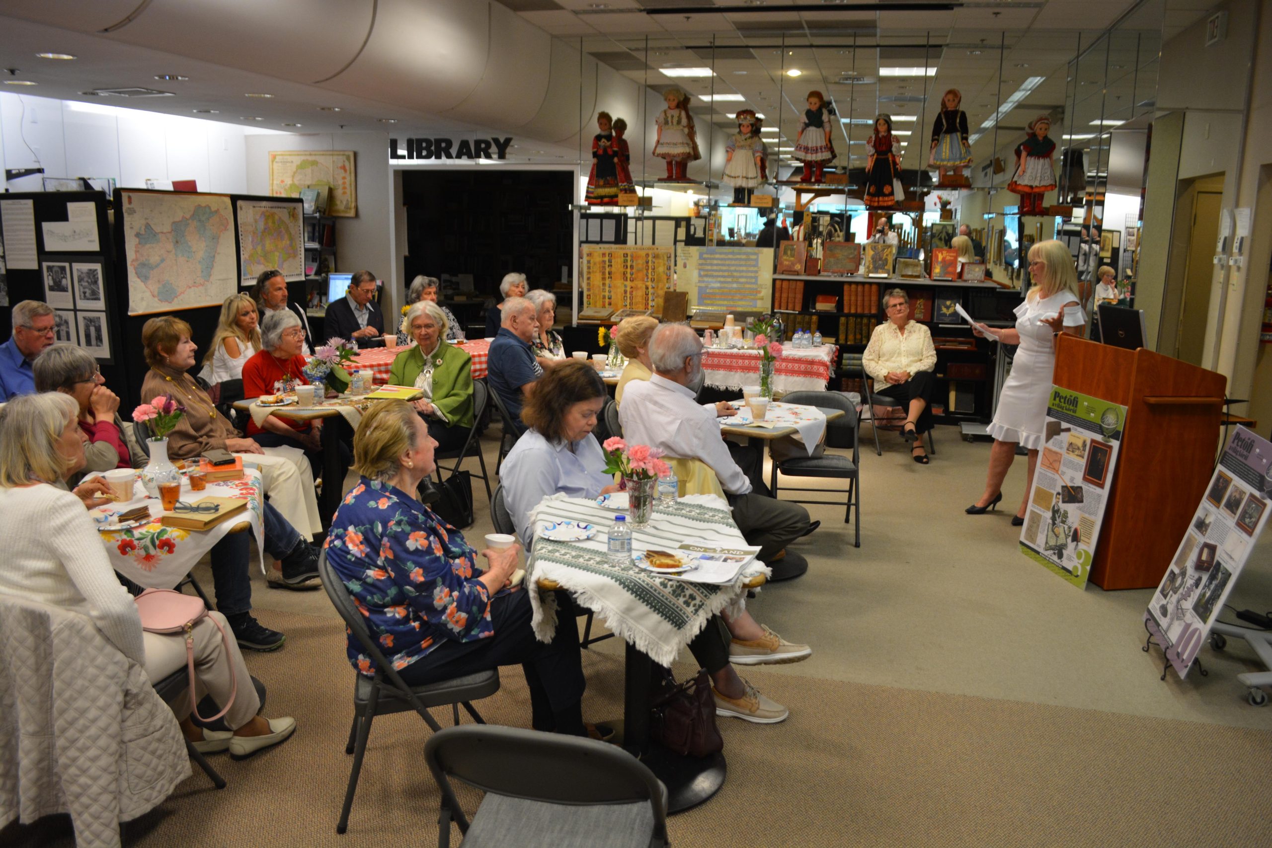 It was a wonderful afternoon …we sat at the Cafe tables and had wonderful food and listened to each other in the intimate surroundings of the Museum. Kuni Nádas, one of our Program Committee members, reminded us that the Surgeon General recently commented that there is an epidemic of loneliness in our society and that people need to socialize. Well, that’s just what we did on this May afternoon!!