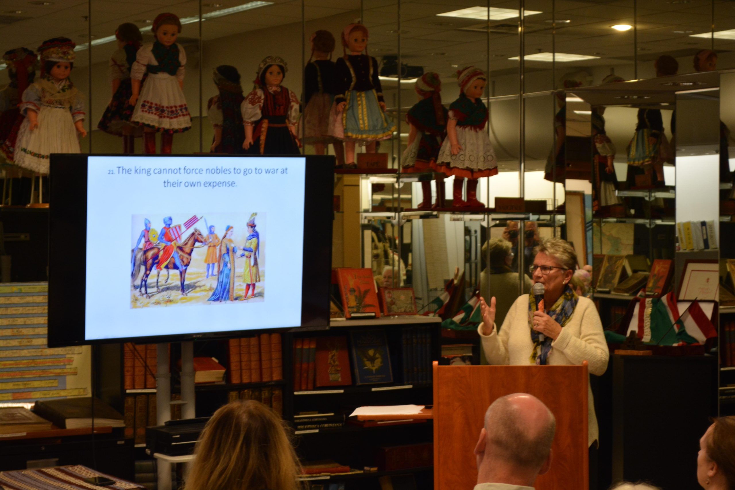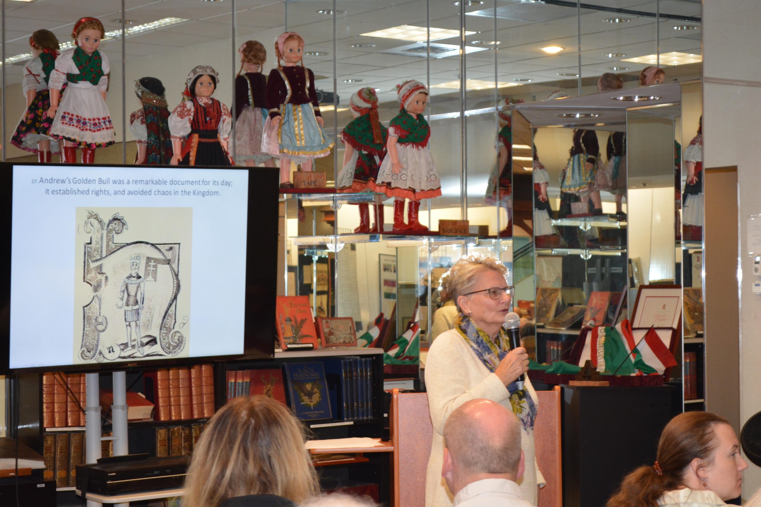 We gathered on November 12th to recognize the 800th anniversary of the promulgation of the “Golden Bull”, a medieval document that defined the rights and duties of early 13th century Hungarian noblemen and their relationship to their king. To understand the significance of this document, we reviewed the laws and customs of medieval Hungary, the various strata within Medieval Hungarian society, as well as the reign of Andrew II and the events that led up to the writing and publication of the Golden Bull (Aranybulla). We then reviewed some of the more important parts of the Bull as well as some unique issues the Bull addressed. The program was well-attended, including a group of young people from the Cleveland Hungarian School, who were studying this topic in their class. After the program, our guests had a chance to continue discussing the various historical and social currents that were at play in early 13th century Hungary as they enjoyed refreshments served by members of the Museum.