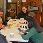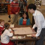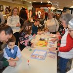 Despite the warnings from the National Weather Service and some cases of the sniffles, we welcomed children to our annual program dedicated to entertaining youngsters. The ages varied from 2 and a half through 11. They worked on Hungarian folk design themed crafts, they became familiar with Hungarian playing cards. They spent time decorating traditional Hungarian honey-cookies (mézeskalács). They challenged their memory through a table game and had fun laughing at a puppet show. And let’s not forget folk dancing in the Galleria Atrium! But above all, they had the opportunity to visit with St. Nicholas, Mikulás Bácsi, who chatted with them and gave them a bag of treats. Then the children joined their parents and grandparents for delicious refreshments and a chance to eat those mézeskalács cookies they had decorated! Thanks to the parents and grandparents who brought these youngsters Downtown to spend time nurturing their Hungarian identity.