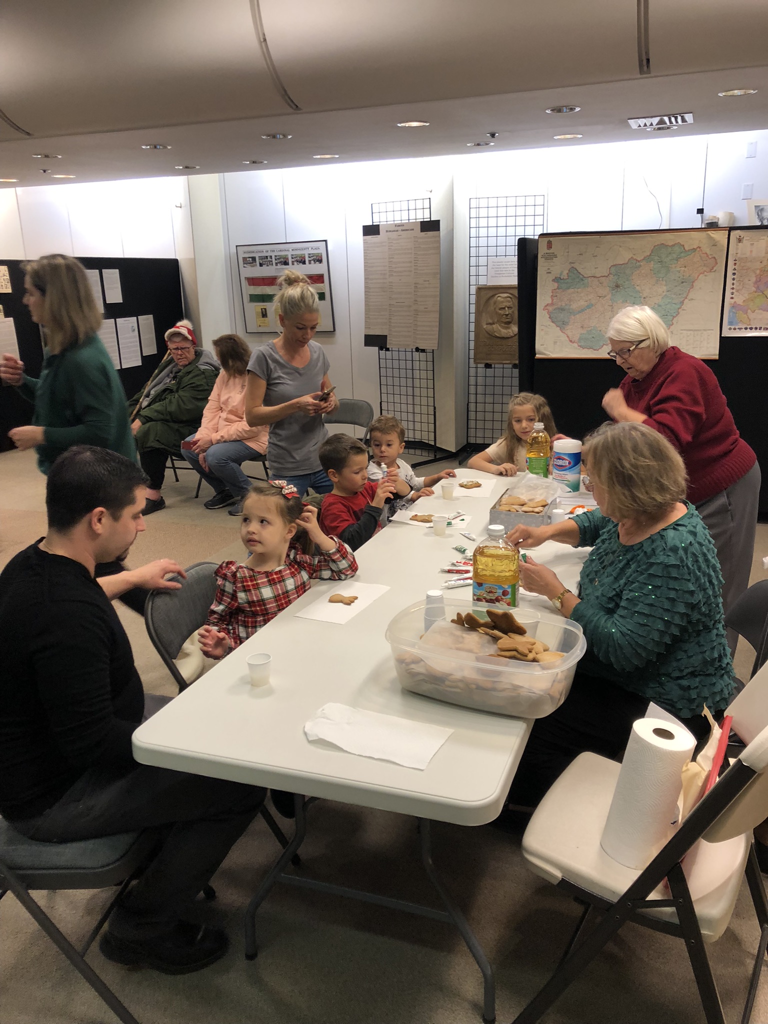 But the ‘Old Fashioned” flavors of traditional honey cookies (mézeskalács) decorated by our young people added to the total experience enjoyed by our young guests, along with seasonal crafts and vocabulary games to enhance their knowledge of Hungarian words for various aspects of dancing and music. This afternoon was made possible by all the volunteers who support our Museum in our efforts to share the richness of Hungarian culture with our visitors. One of the nicest parts of the afternoon came at the end, when all of us, young and older, gathered for refreshments and visiting. The variety of delicious Hungarian flavors, both sweet and savory, was truly amazing!!! This was a beautiful way to celebrate the season and wish each other “Boldog Ünnepek”! ( To see more photos, click on “read more” below.)
