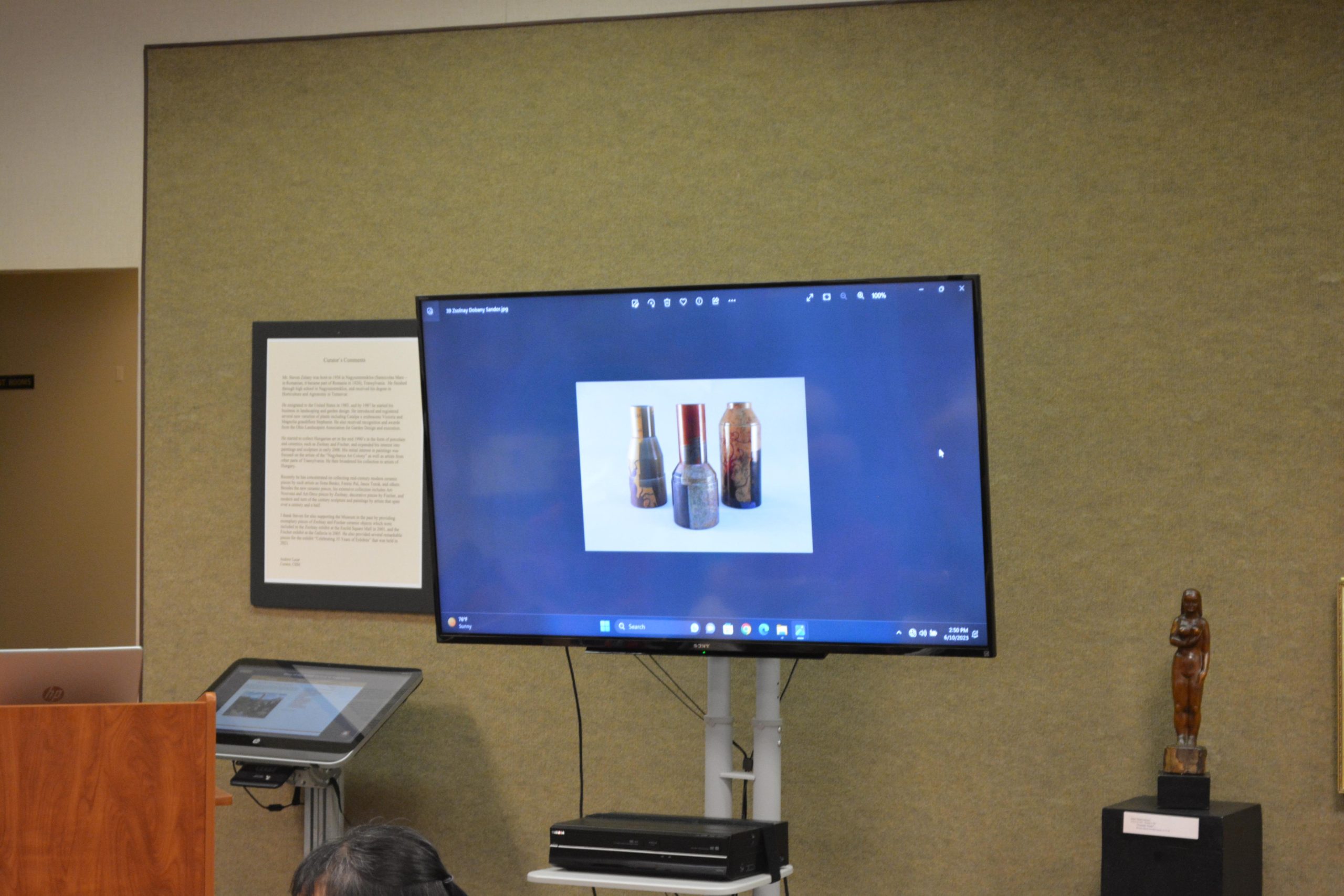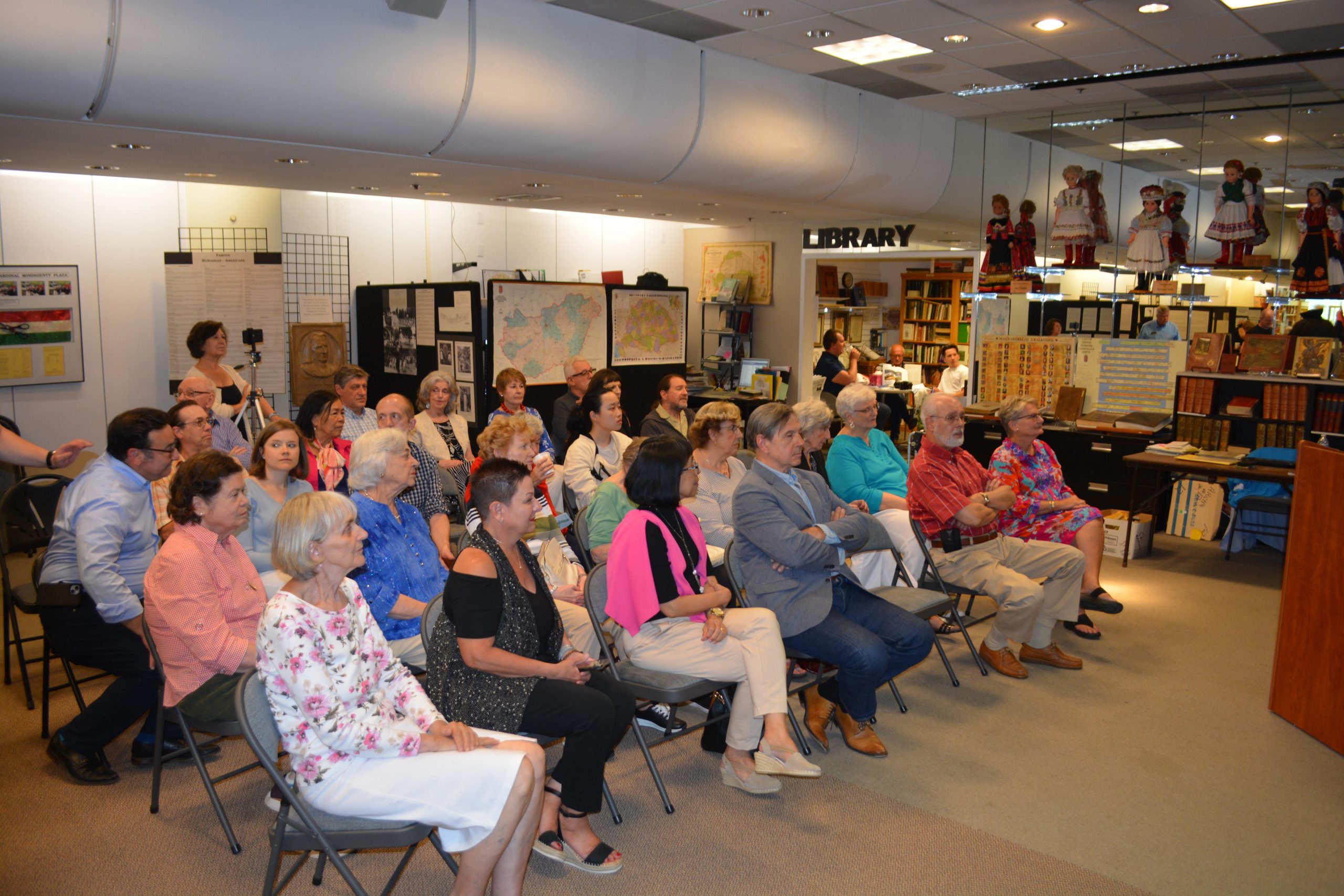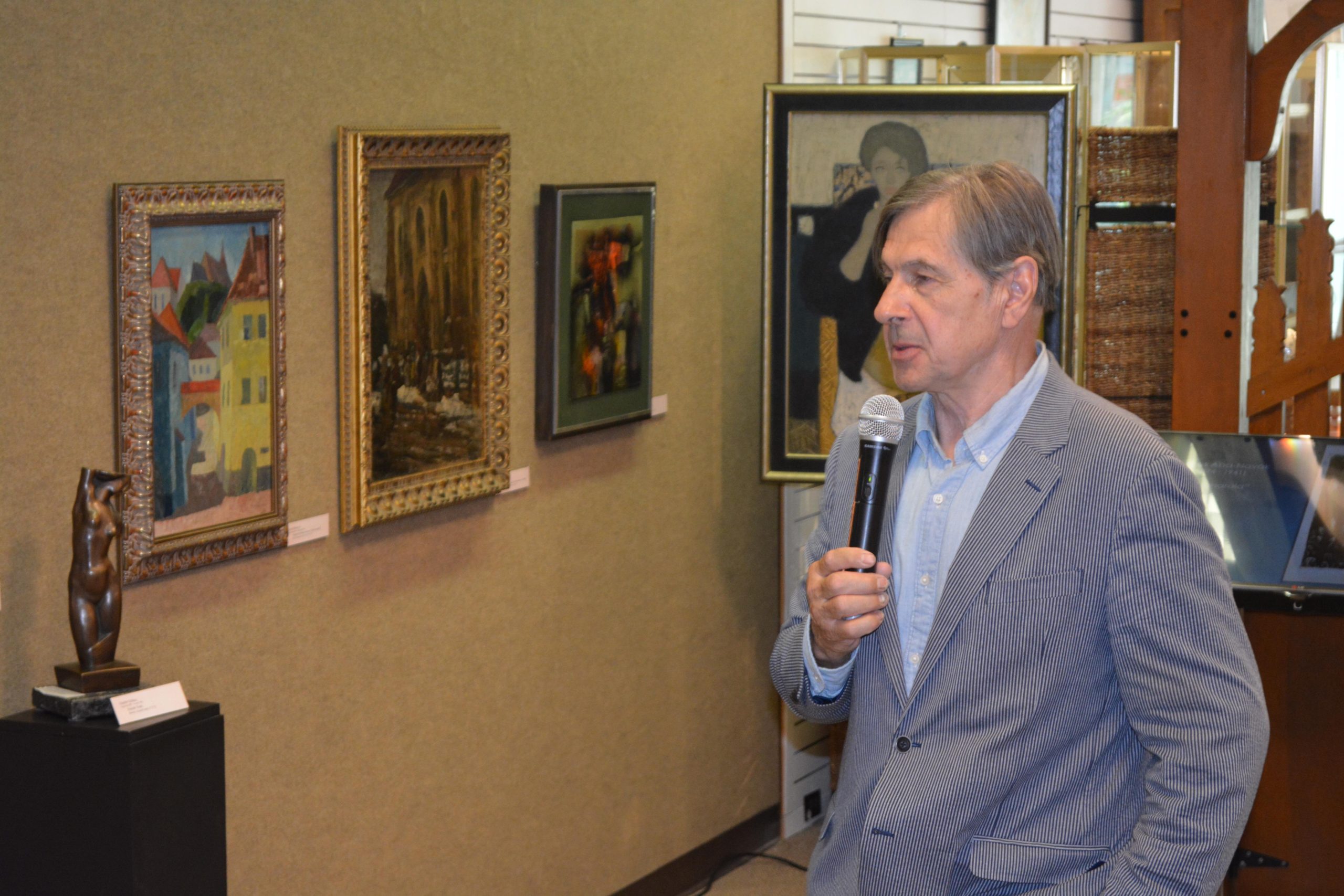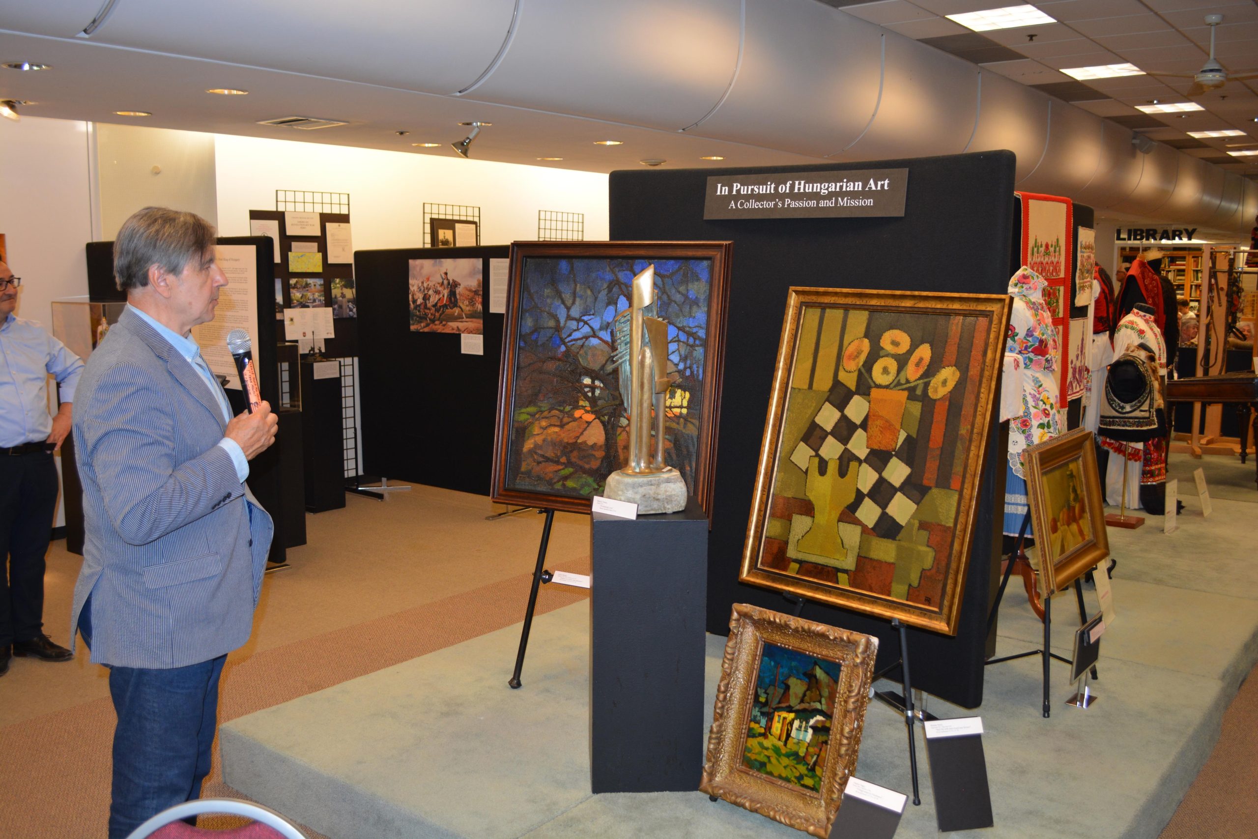 On June 10th, we gathered at the Museum to hear Steven Zalany speak about the items from his extensive art collection that are currently on exhibit at the Museum. Mr. Zalany began collecting art in the 1990s, and recently he has concentrated on collecting mid-century modern ceramic pieces as well as Art-Nouveau and Art-Deco pieces by Zsolnay, decorative pieces by Fischer, and modern and turn of the century sculpture and paintings by artists that span over a century and a half. He shared his extensive knowledge of the various artist colonies in Transylvania and throughout Hungary, focusing on some of the prominent founders of these groups, as well as many artists whose works encompass various styles of painting and sculpture. We learned when the various artists worked, where they studied art, and which artist colony they joined. On a personal note, he was asked about which pieces that were on exhibit were his favorites, and he spent time describing each piece that graces the exhibit wall of our Museum.