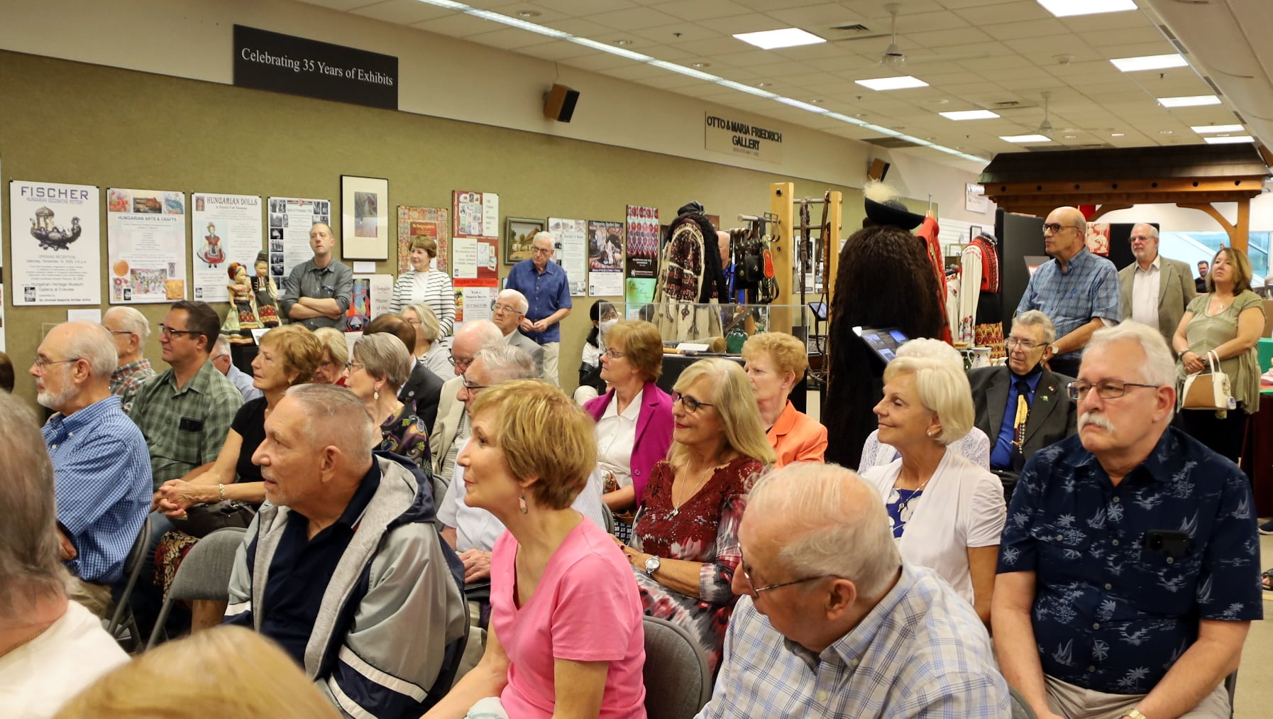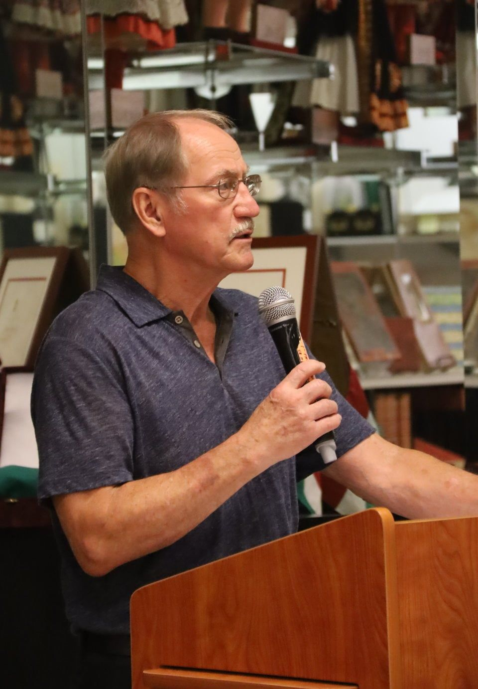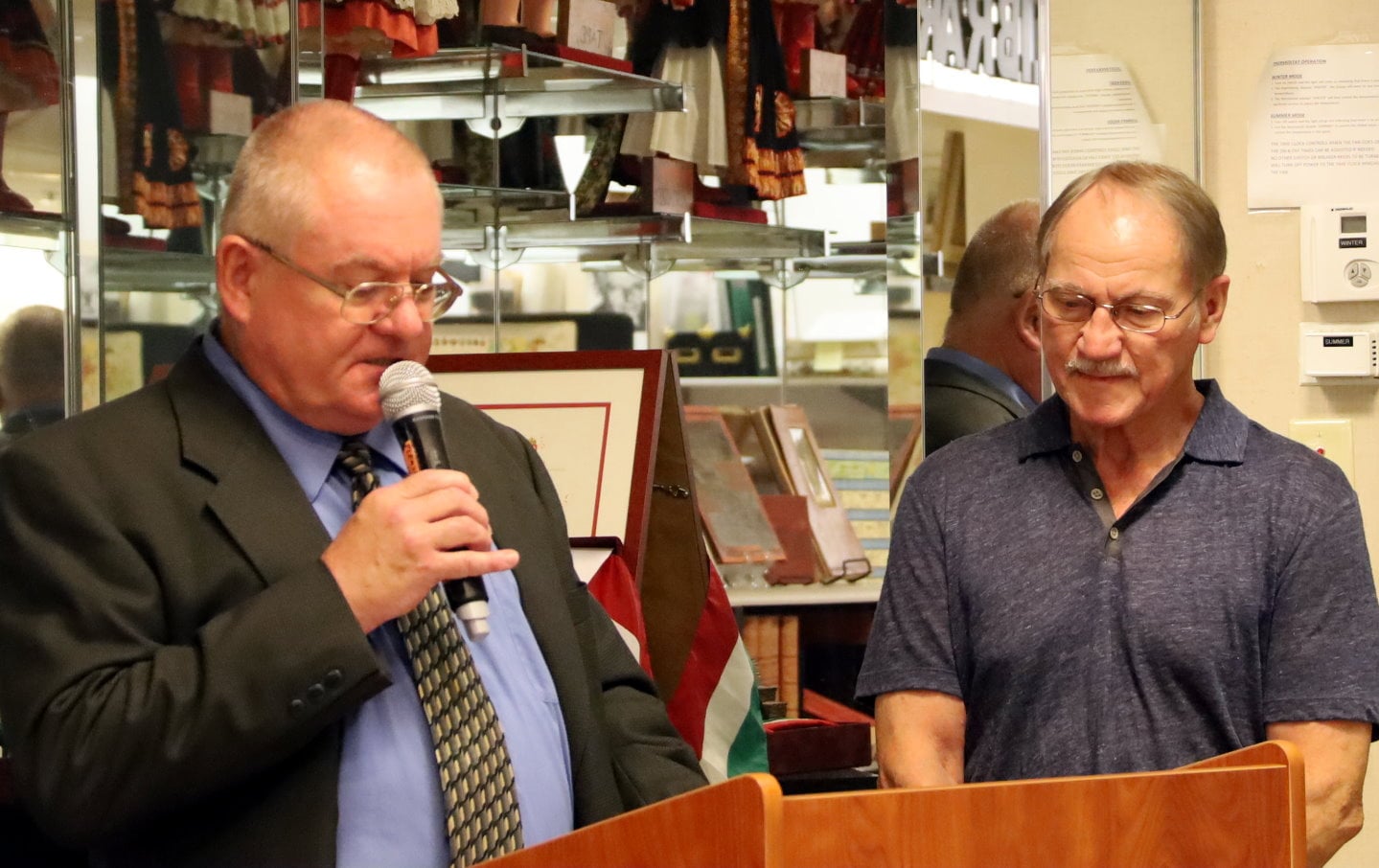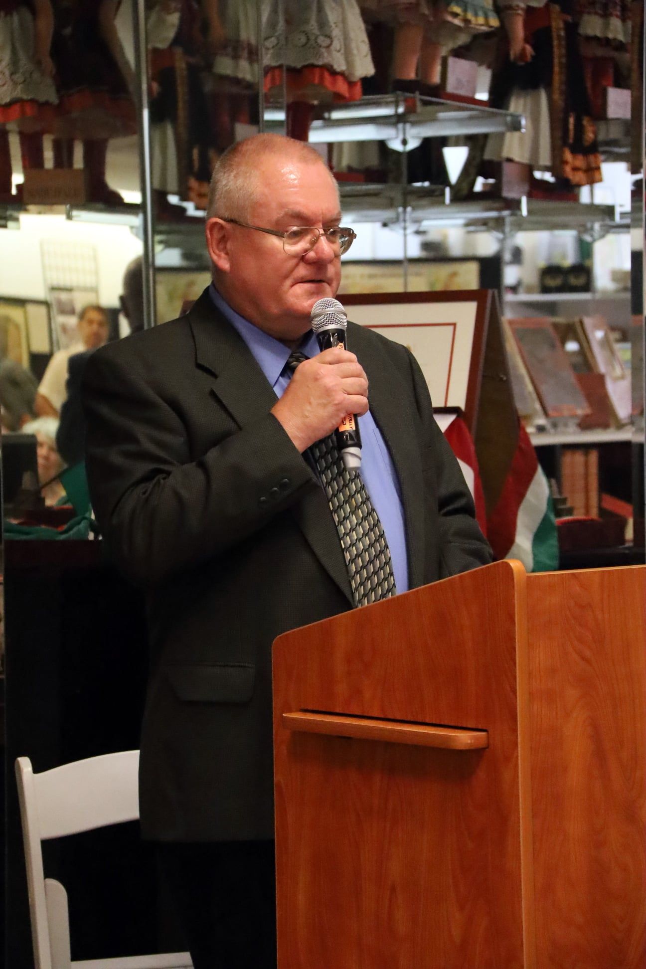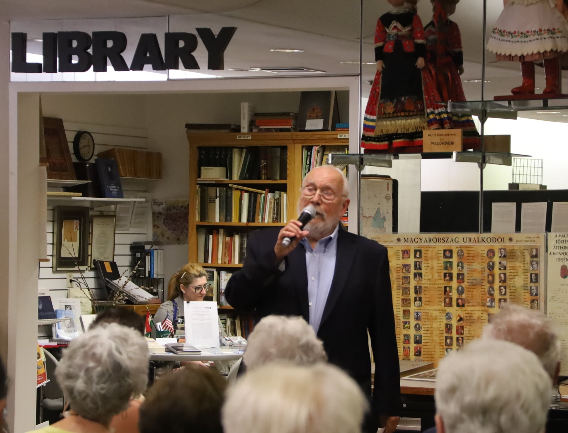 A long-awaited gathering became a fun afternoon, as the Museum sponsored a “Re-opening event” on July 17th, featuring the opening of a new exhibit. After a short introduction by past-president Alex Kézdi, János Szigeti, our current president, took to the podium. He read the letters sent on behalf of Ambassador Szabolcs Takács and Mr. Tamás Kovács, The Consul General of Hungary in Chicago. Both were invited but were unable to attend but they extended their congratulations, with the Consul General and the Community Diplomat expressing how convinced they were of the extraordinary wealth of the Museum’s collection and the commitment of the volunteers when they visited Cleveland at the end of May.