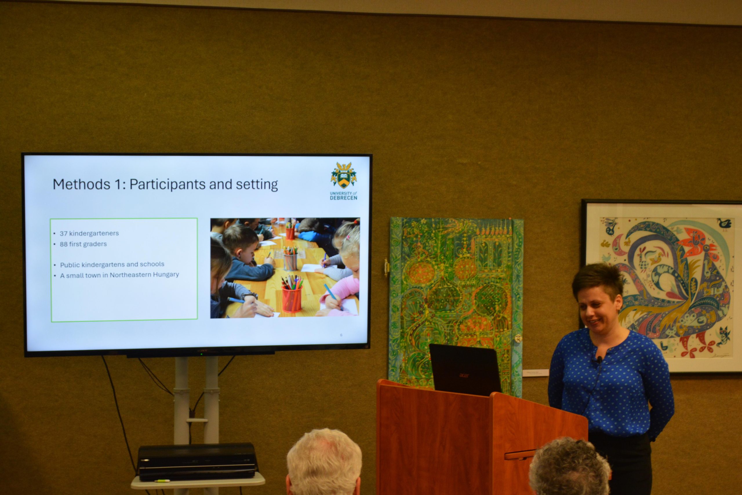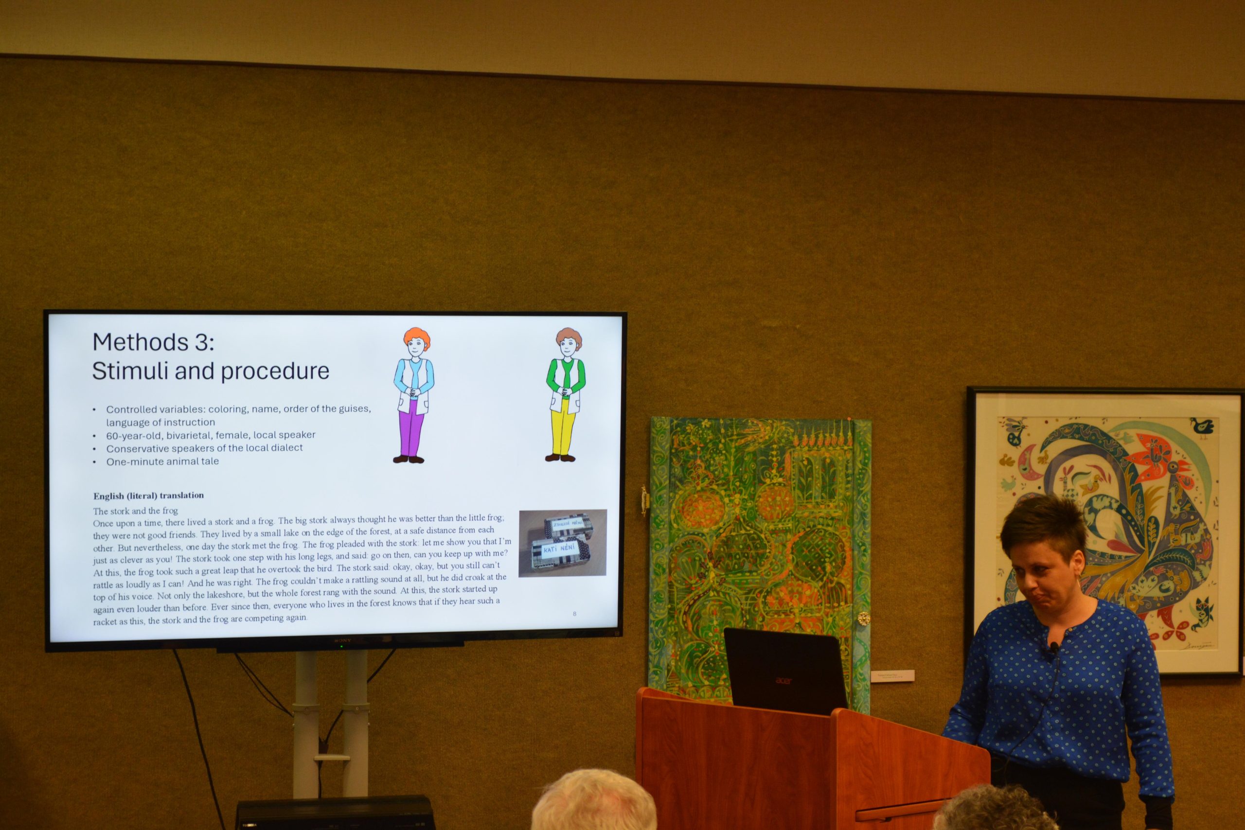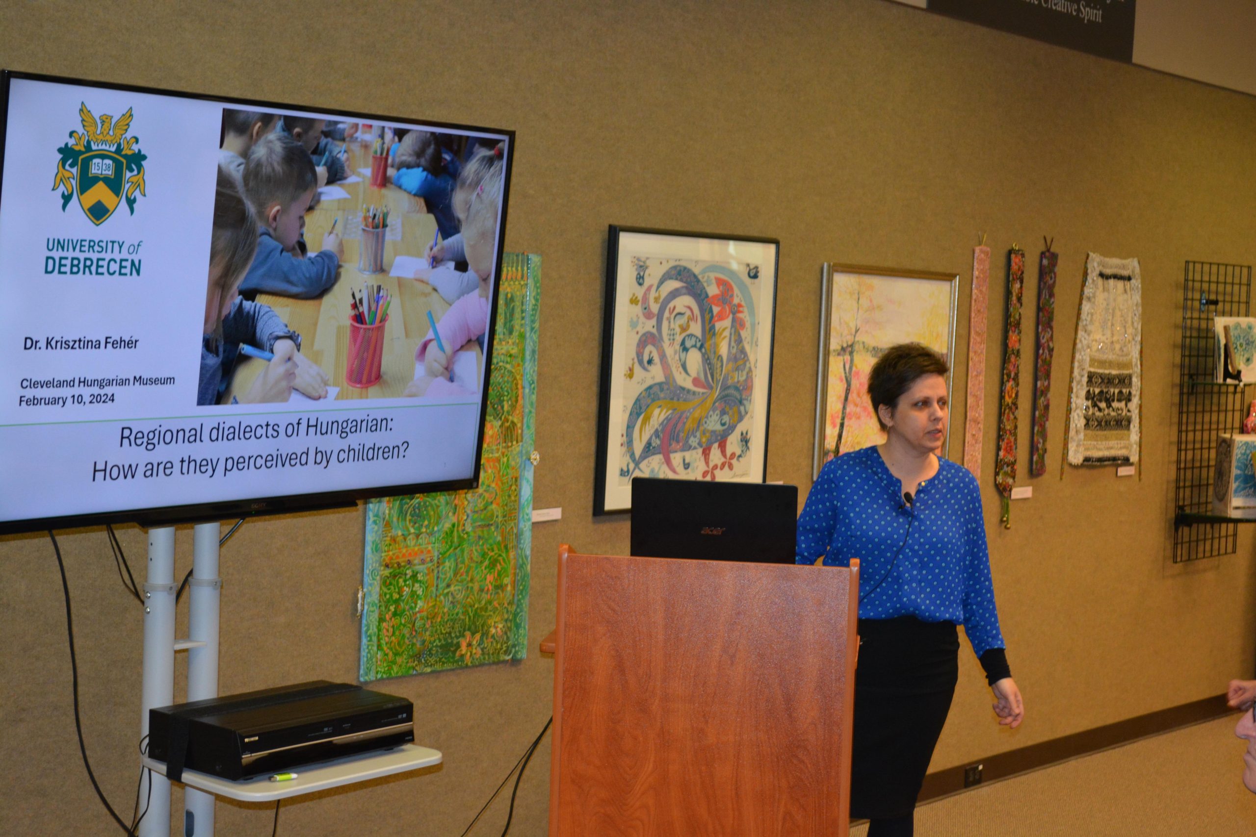 In February, we celebrate International Mother Language Day. In celebration of this day, we heard a lecture by a distinguished Hungarian linguist, Dr. Krisztina Fehér. She presented the results of her research about children’s perception of regional dialects of Hungarian. A regional dialect is a variety of a language spoken in a particular geographical area. The common perception is that regional dialects are valuable language varieties. Yet, research has shown that adults often prefer those who speak the standard language as opposed to those who speak a regional dialect. The question Dr. Fehér’s research was designed to answer is whether children also prefer those who speak the standard language to those who speak a regional dialect and if so, at what age and in what way does this preference manifest itself? Her research sample included 5-7-year-old kindergarteners and 7-9-year-old first graders in a small town in Northeastern Hungary. In a crossed and matched design, the children heard a 1-minute story told (by the identical storyteller) both in the standard and the regional dialect. The findings showed that even the youngest participants preferred the standard language, and this preference was even stronger in the later age-group cohort. A lively discussion followed where participants drew comparisons to preferences for standard language in the United States and how these prejudices challenge instruction in the educational system. Dr. Feher is studying language patterns among bilingual Hungarian speakers in Cleveland and we hope to invite her back to describe those results as well.