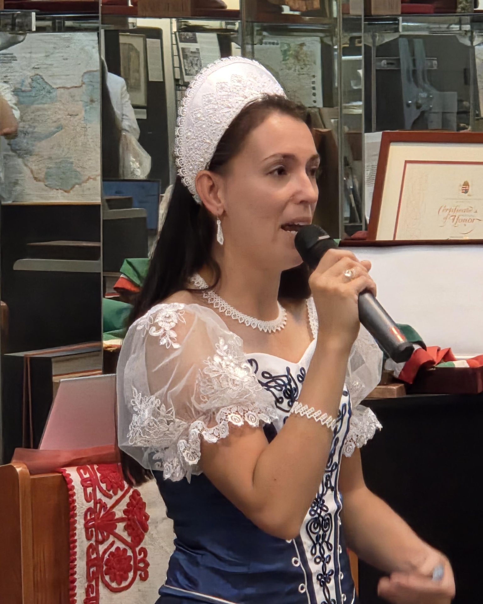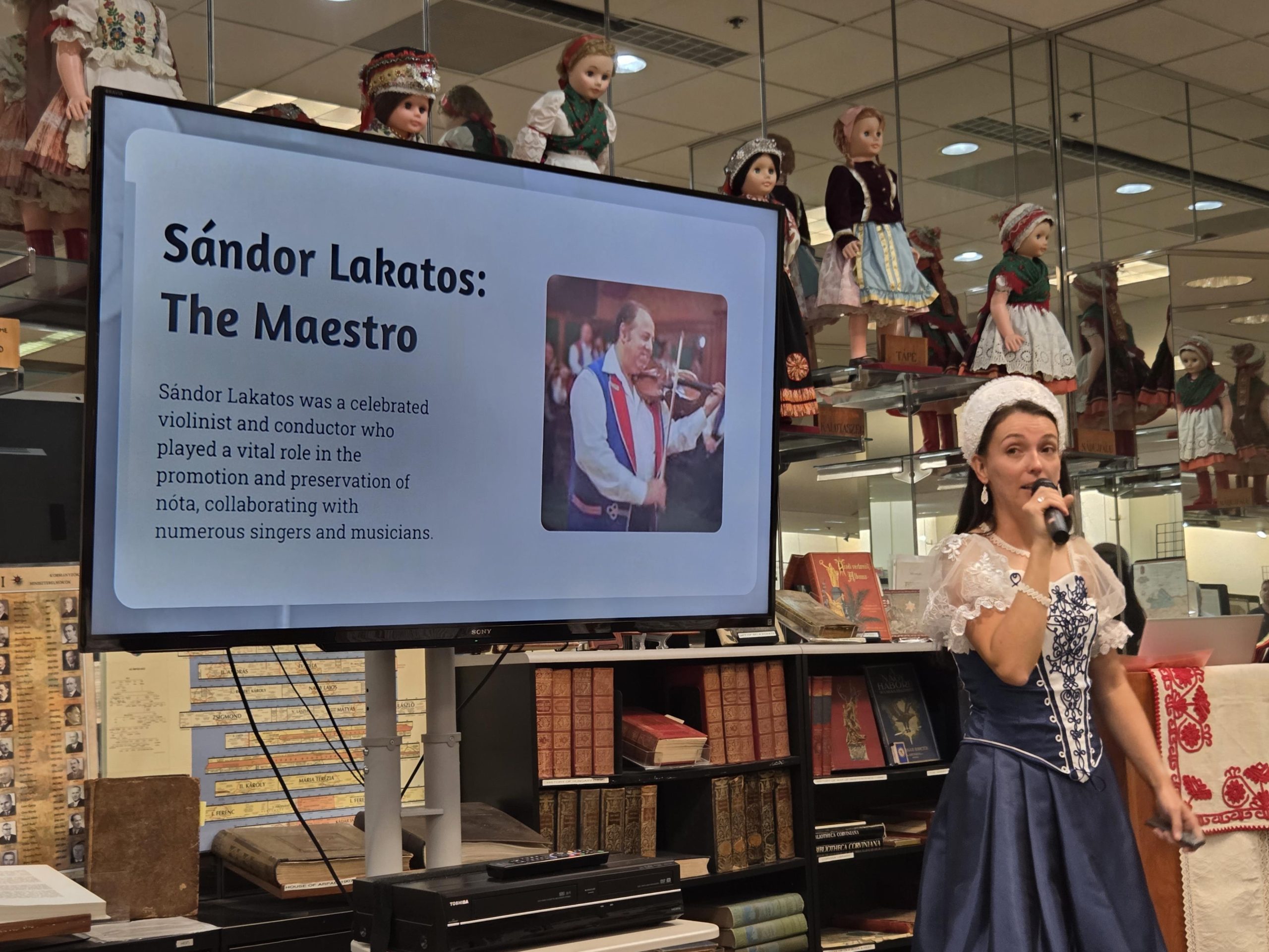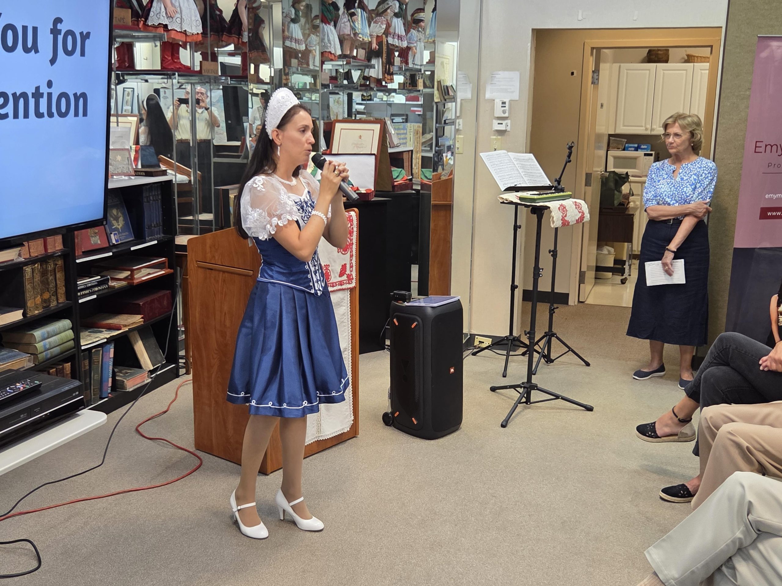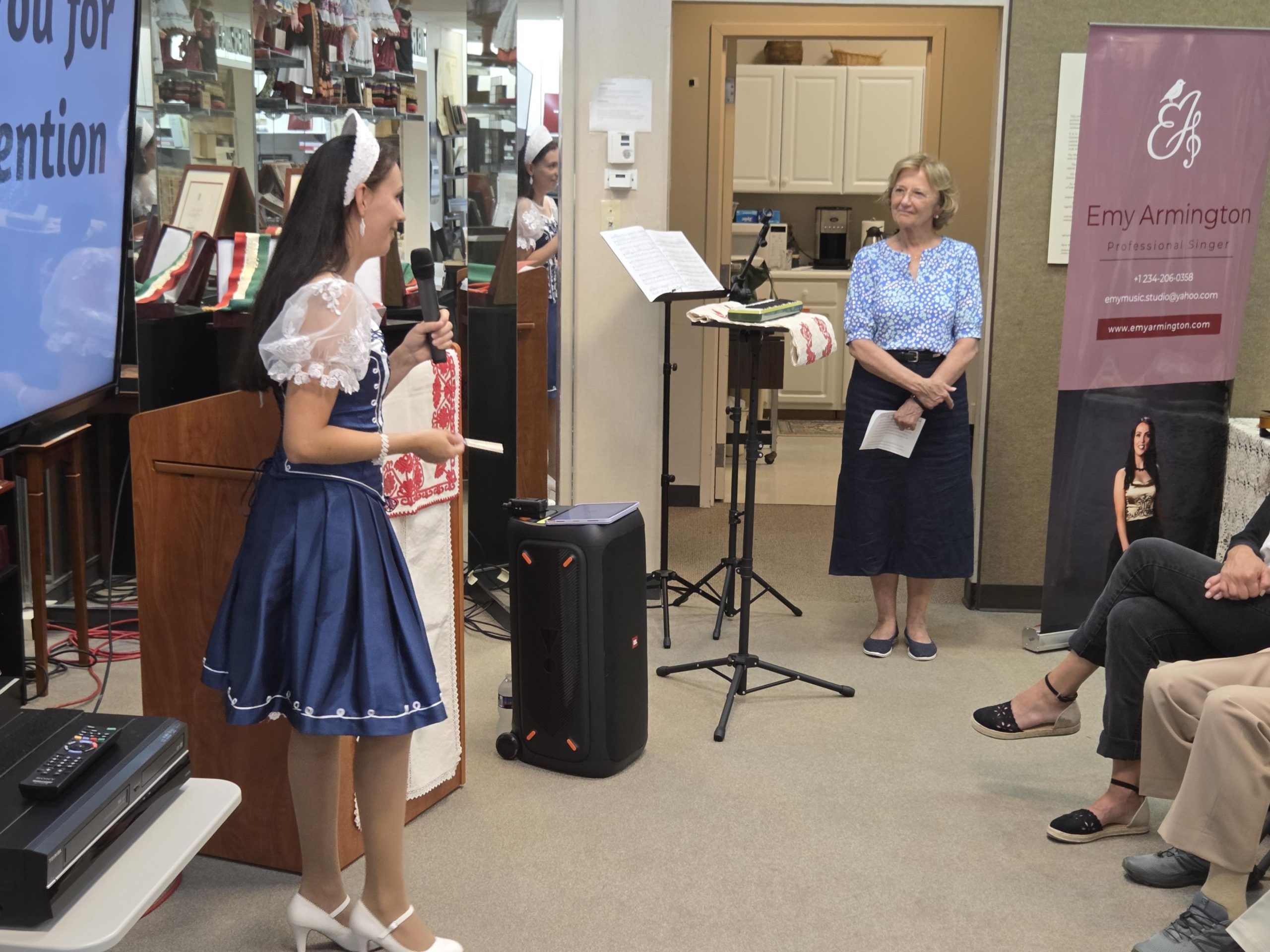 The Museum was packed as Ms. Emőke Armington delivered her outstanding presentation, which featured historical and musical insights to this unique art form, as well as live performances of “Nóta” songs. We heard a wide variety- some lively and humorous, some soulful, some hauntingly expressive. Some were sung with accompaniment and some were sung a capella. Both the lyrics as well as the melodies that Ms. Armngton chose, were perfect examples of the wide scope of songs that fall under the “Klasszikus Magyar Nóta” umbrella. We were able to “hear” how the “Nóta” serves as a bridge between the folk and the more classical forms of Hungarian music.