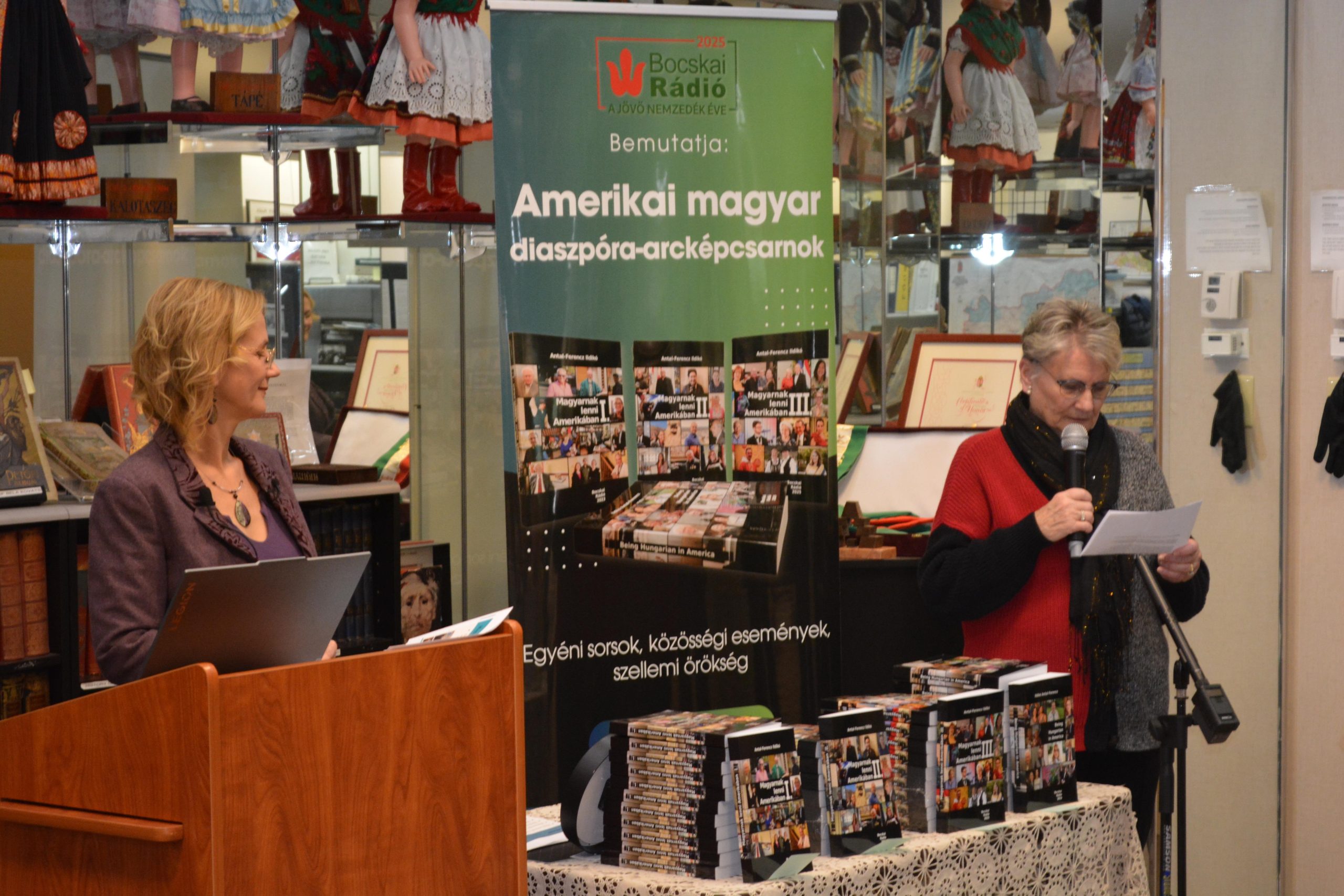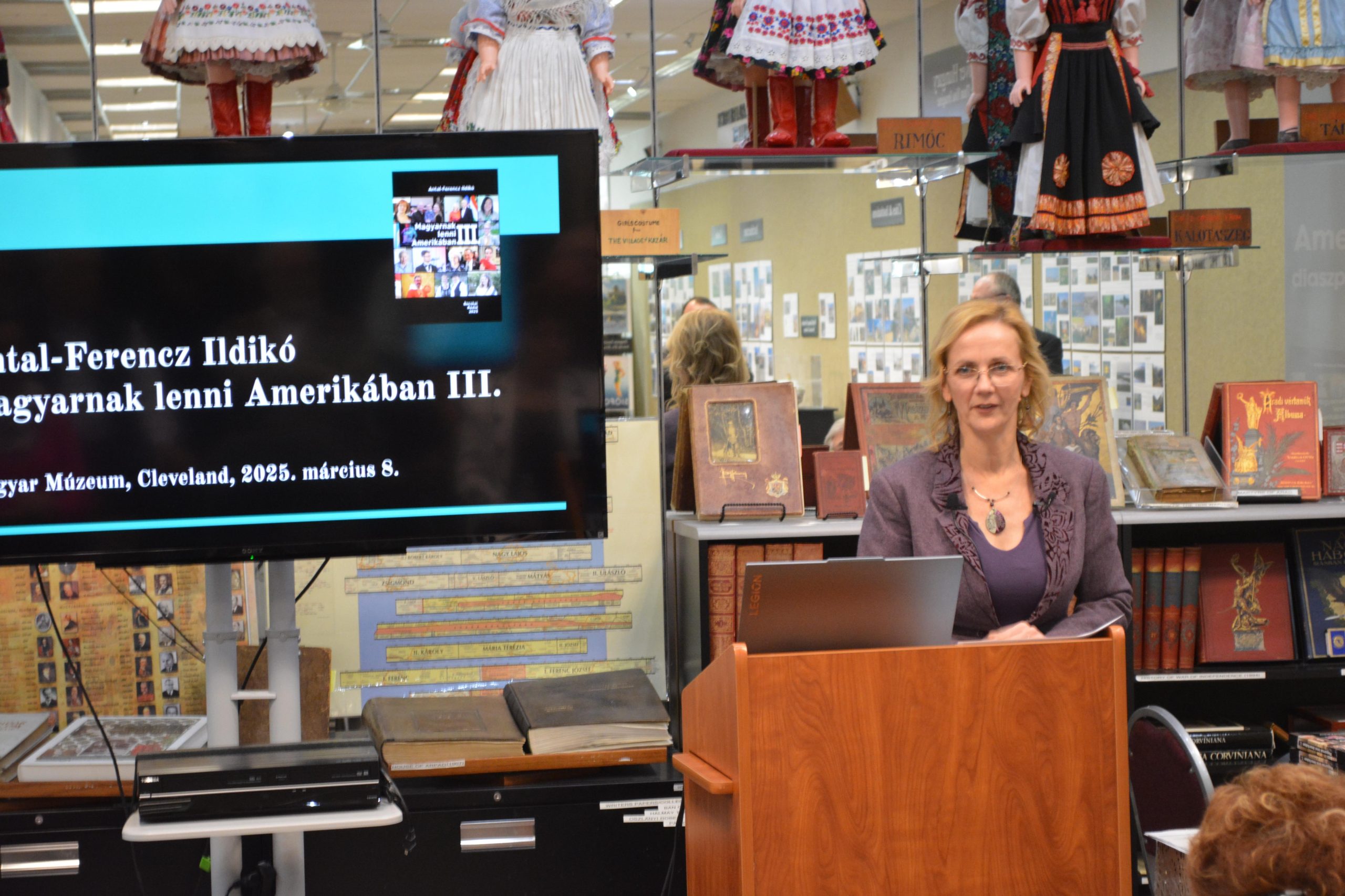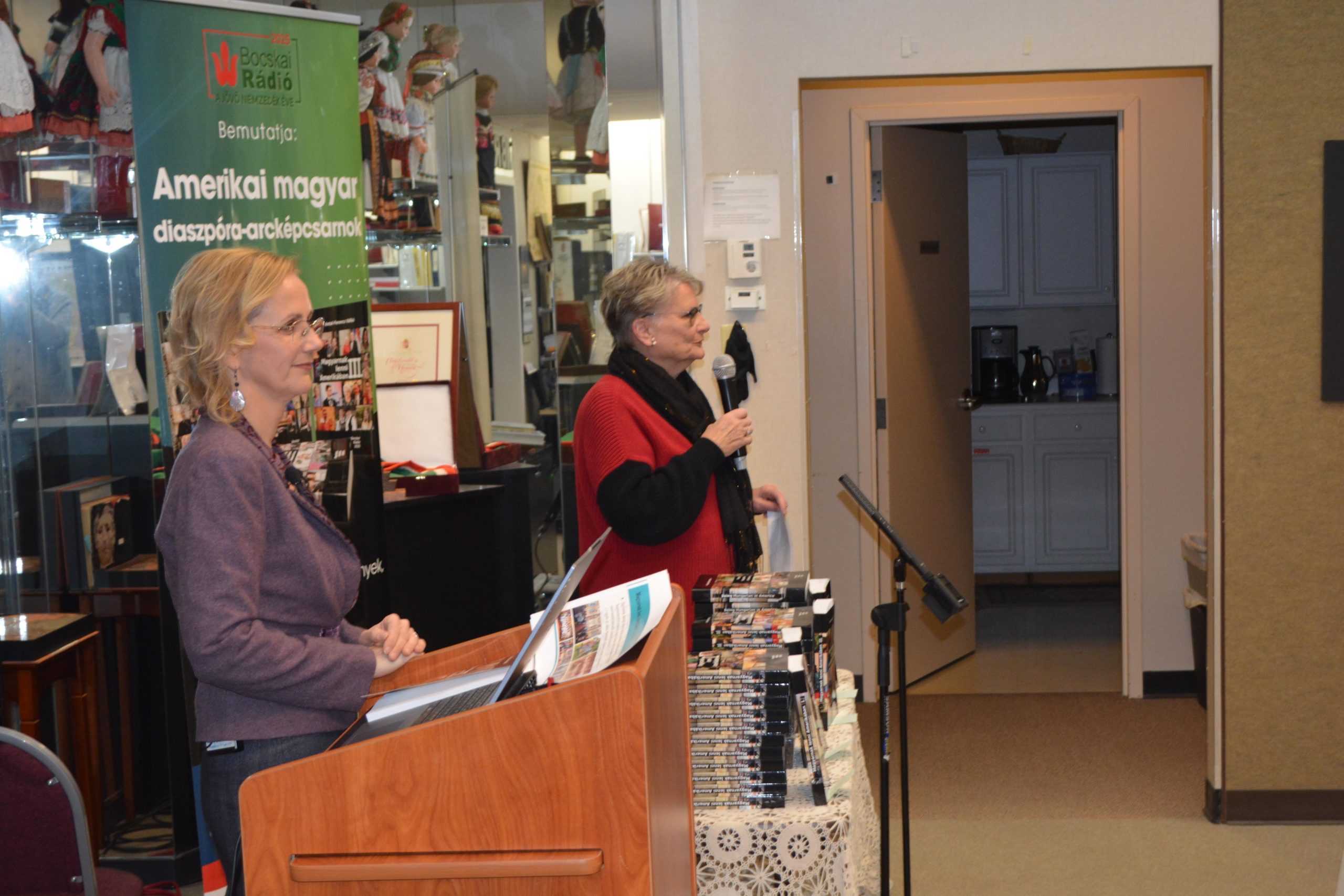 On Saturday afternoon, March 8th, we had a Hungarian language program at the Museum. It was well-attended and well-received! Our speaker, Ildikó Antal-Ferencz, is a freelance journalist who spent almost 3 years in the U.S. Her husband’s job landed the family in New Jersey, and she spent a significant portion of those years interviewing Hungarians living in the diaspora. Their stories encompass three volumes in Hungarian, and 2 volumes in English, containing roughly 106 interviews with Hungarian-Americans residing anywhere from east coast, west coast and many states in between. Many of us sitting in the seats thought we knew how other members of the diaspora lived their magyar identity, but listening to Ildikó, you realized that our magyar communities have active members of different ages and interests. We had some out of town attendees, who were very complimentary of our Museum and its collection, library. Questions and answers were followed by refreshments and a book signing by Ildikó.