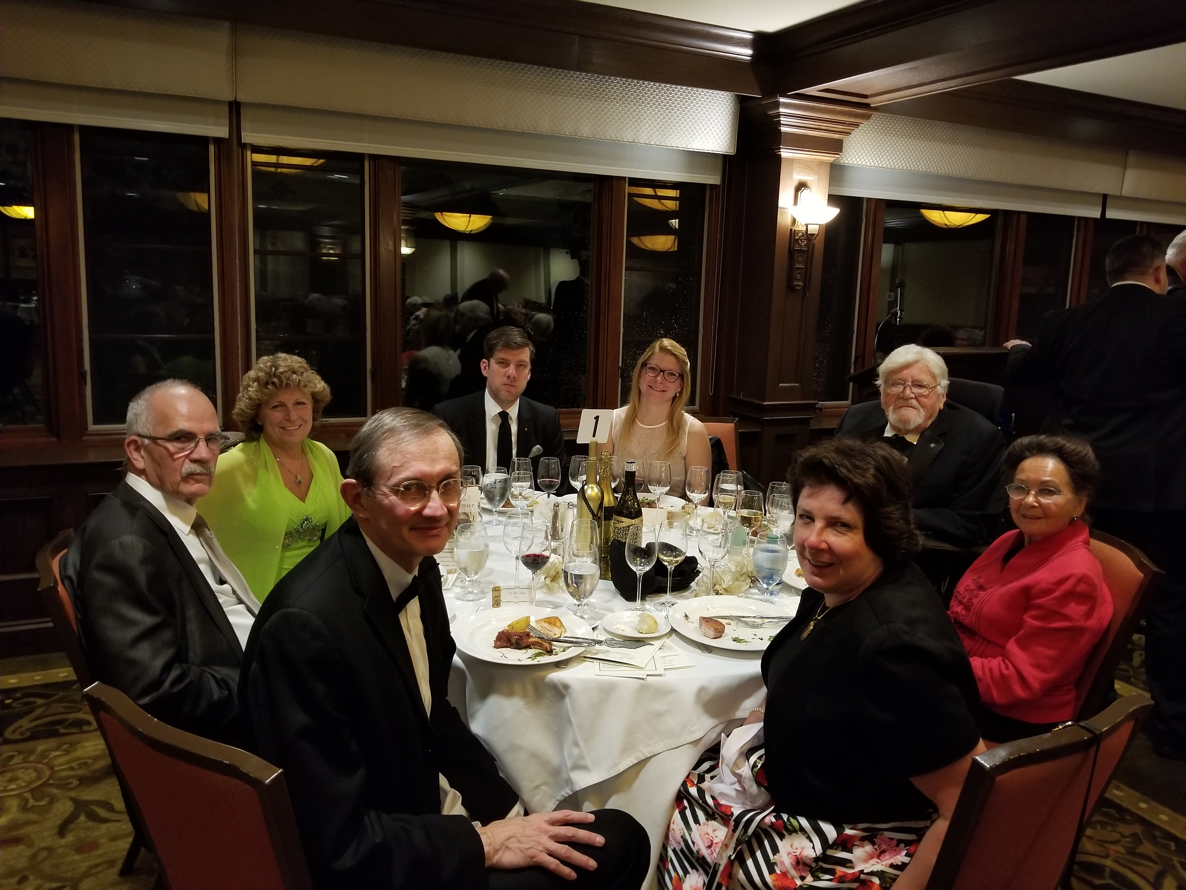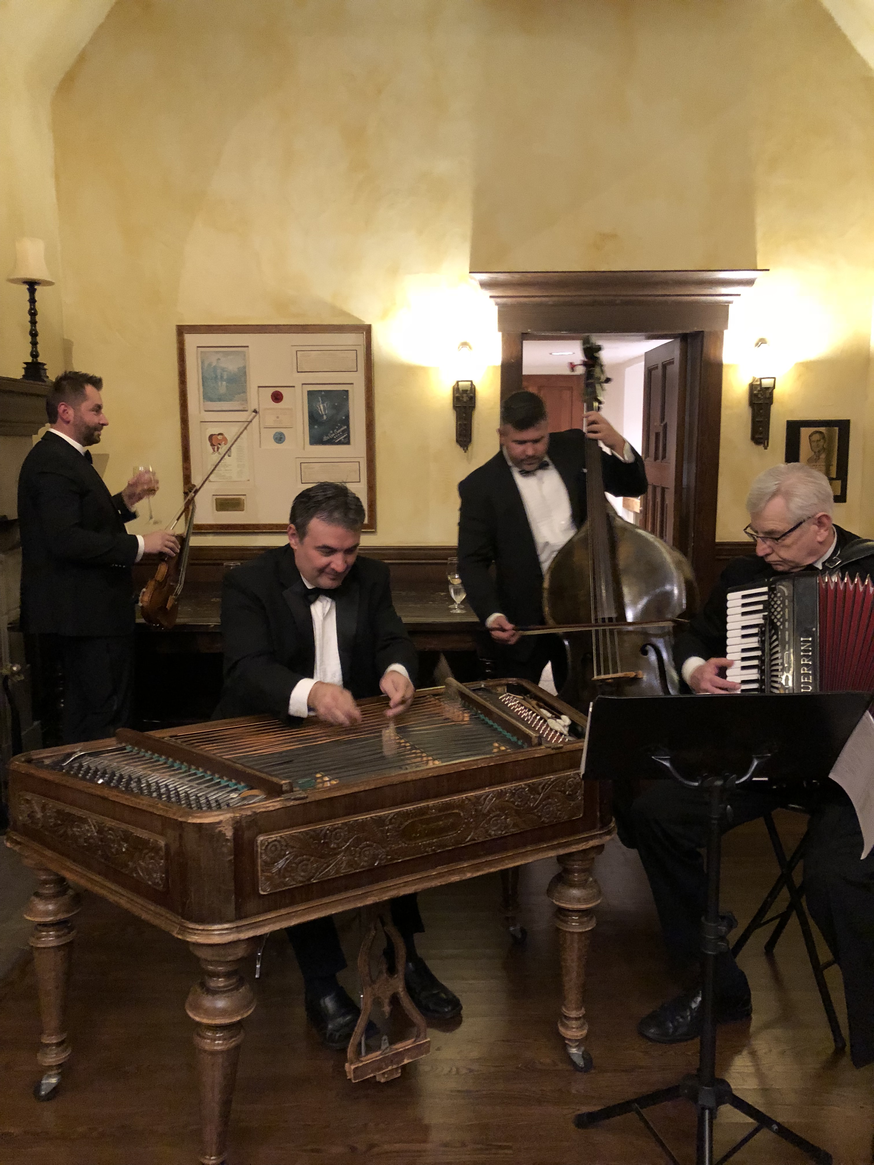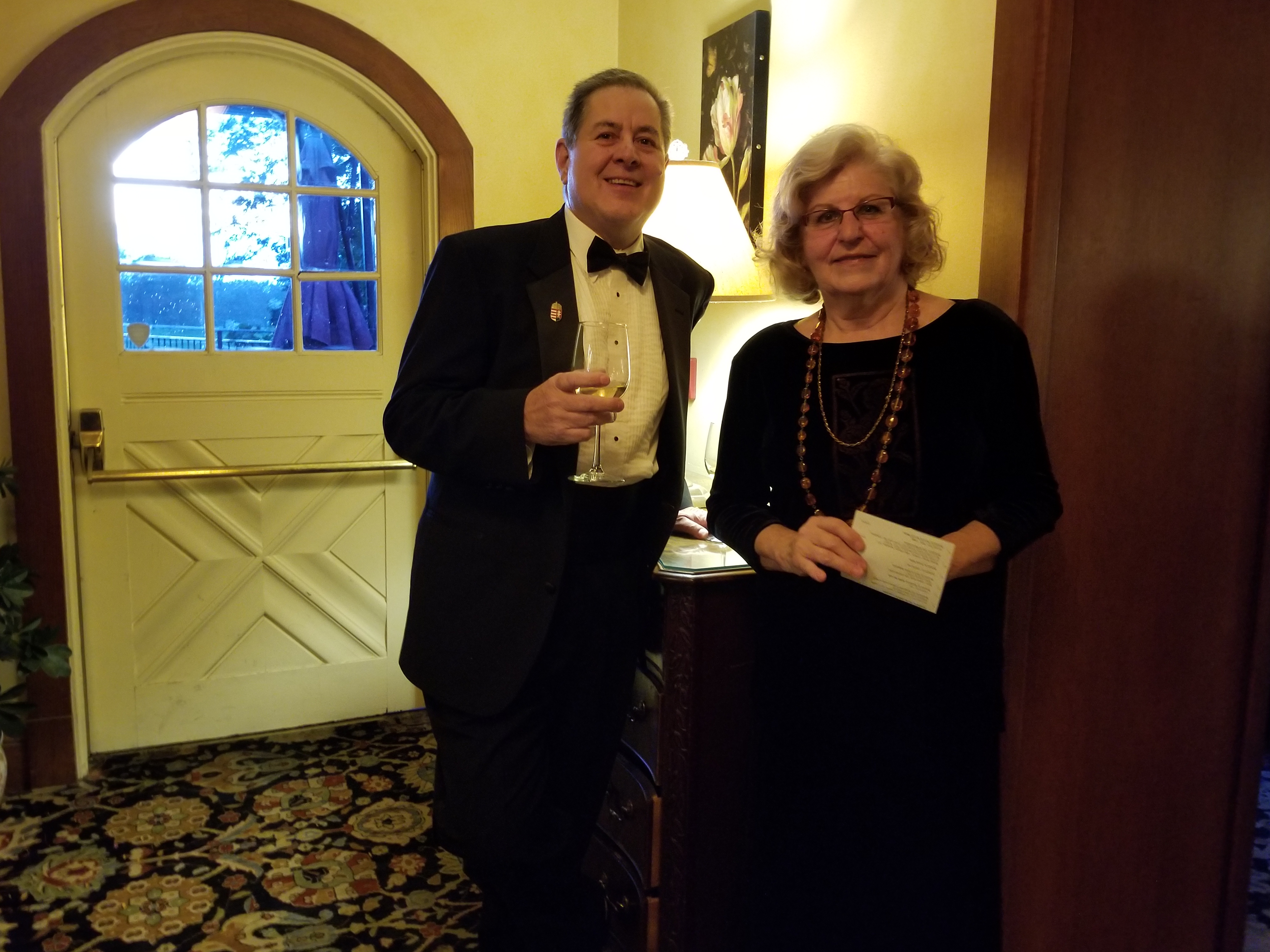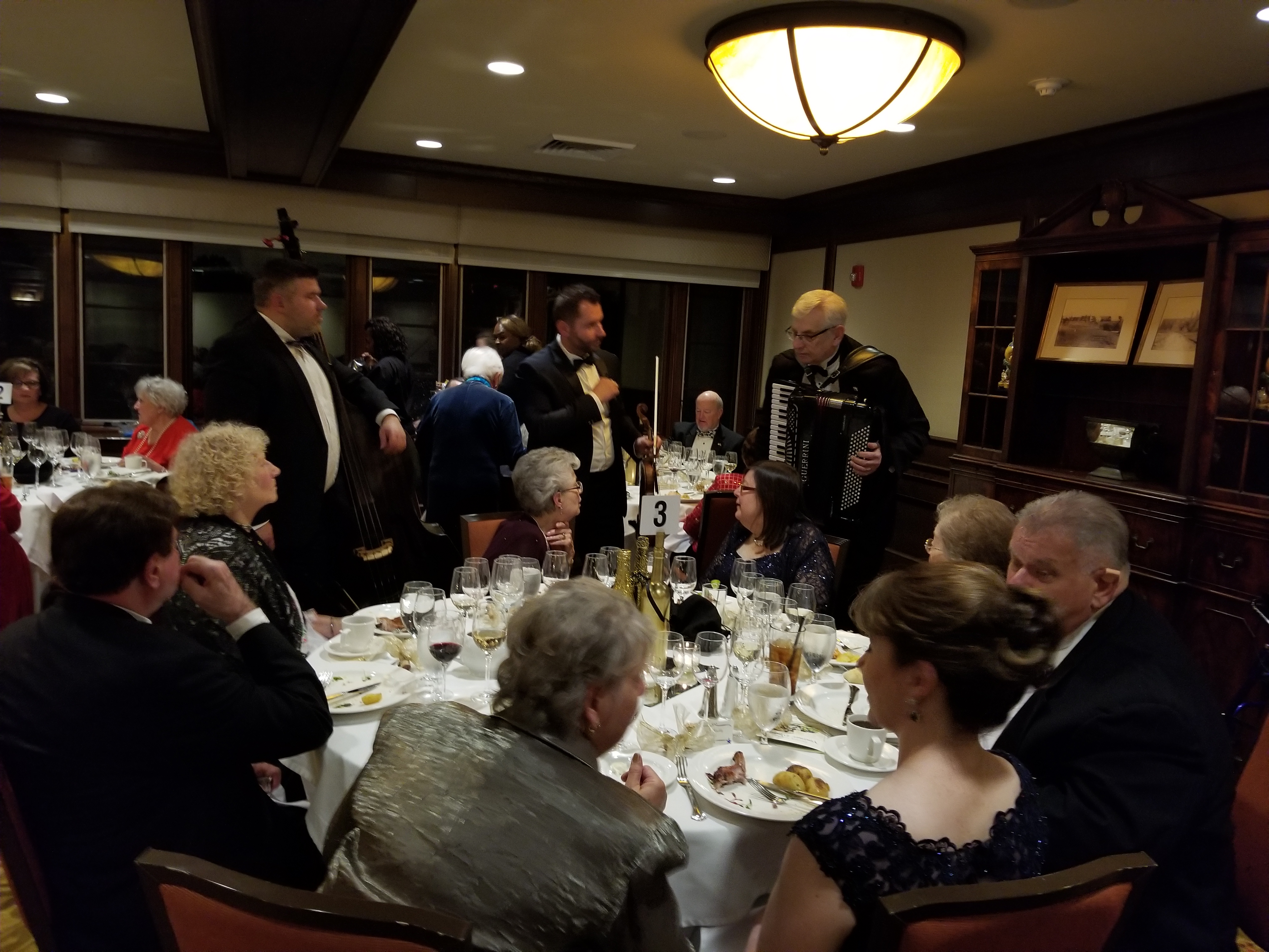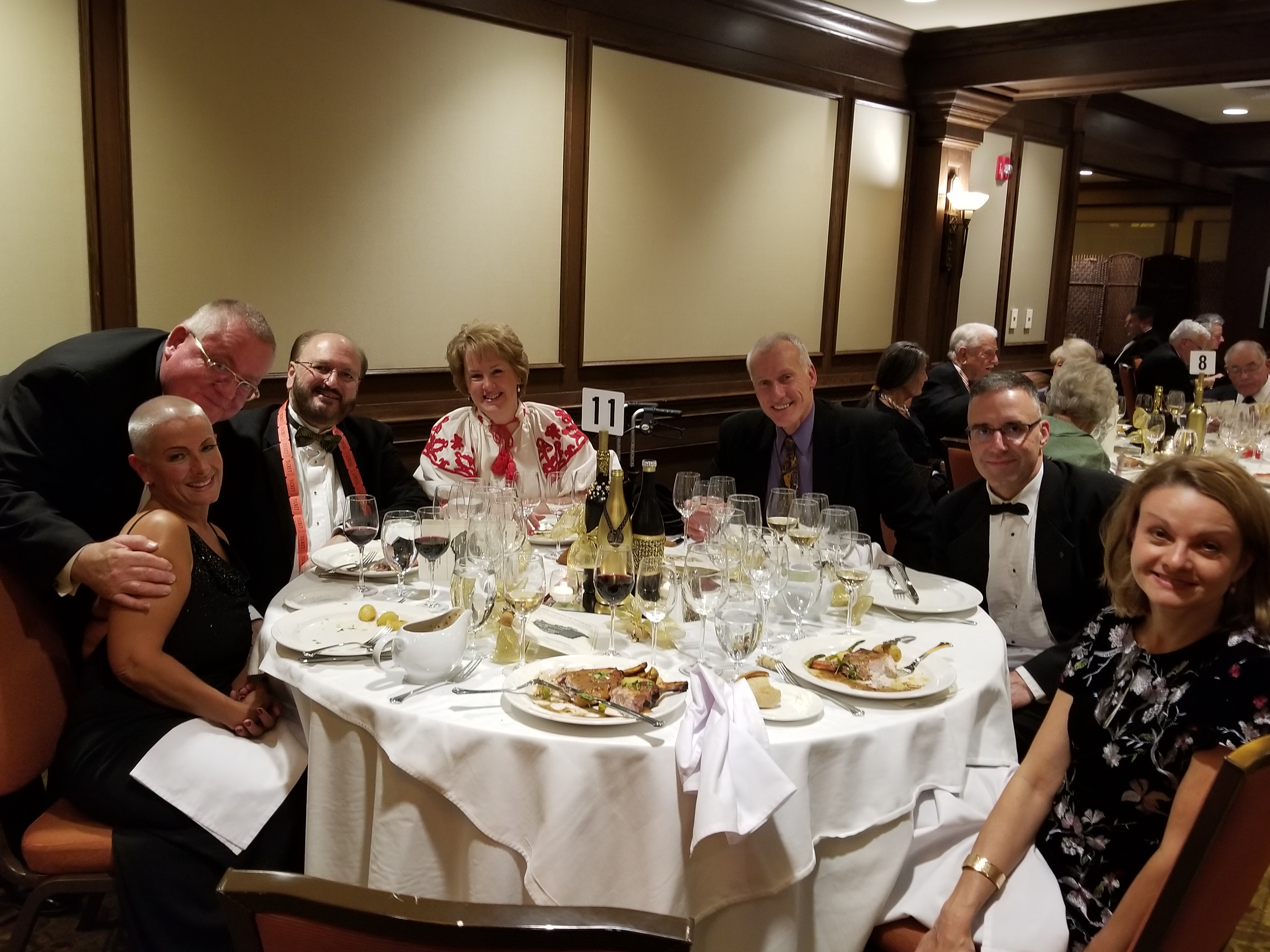 The guests arrived, the first wine was served, the appetizers and the pogácsa were tasty! The evening proceeded as planned: fine wine, intimate atmosphere, lovely table settings, good food, and good company. To add to the ambiance, the reception hour was made all the more memorable by piano music setting the festive atmosphere. The dinner experience was enhanced by the Magyar sounds played by members of Harmonia. Featured wines came from some of the finest wine-growing regions of Hungary: from Tokaj, a 2015 Patricius Furmint and a 2012 Füleky Pallas Late Harvest; from the Mátra region, a Szőke Mátyás, 2016 Pino Gris (Szürkebarát) and from the same winery, a 2017 Irsai Oliver; from Sopron, a Pfneiszl 2014 Távoli Világ Cuvee. There was something to tempt everyone’s palate! Our Honoree for this year’s dinner was the Hungarian Cultural Club of Northeast Ohio, and their president, Mary Jane Molnár.