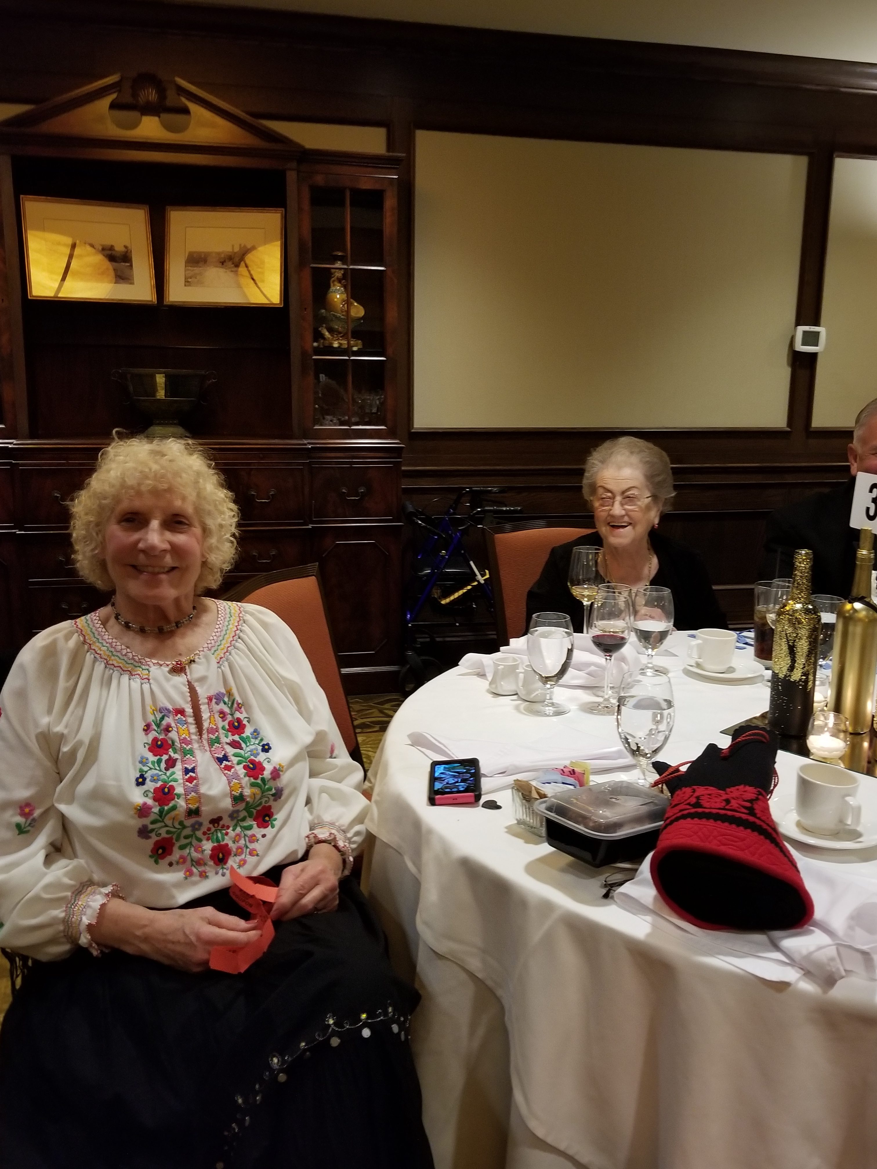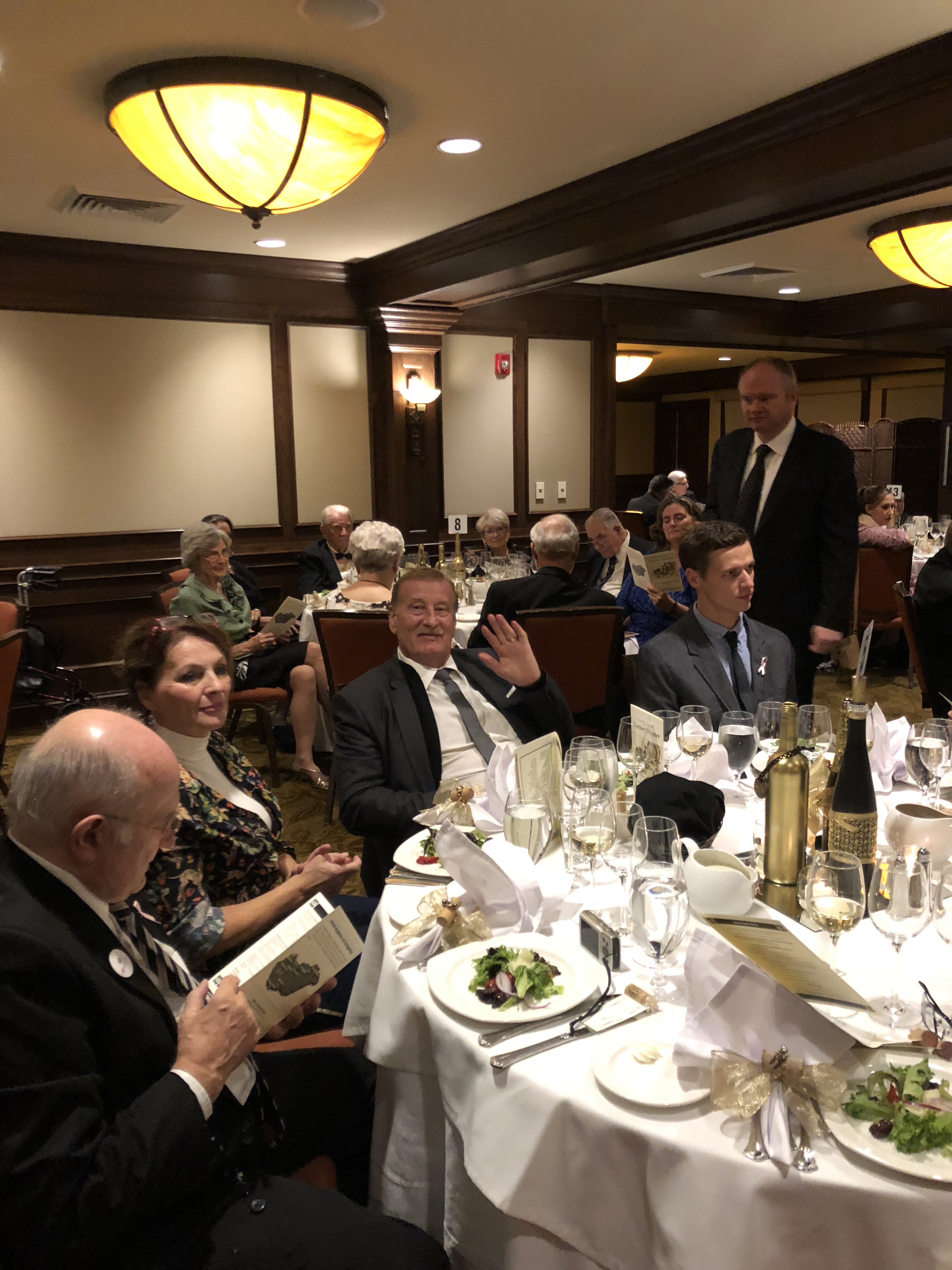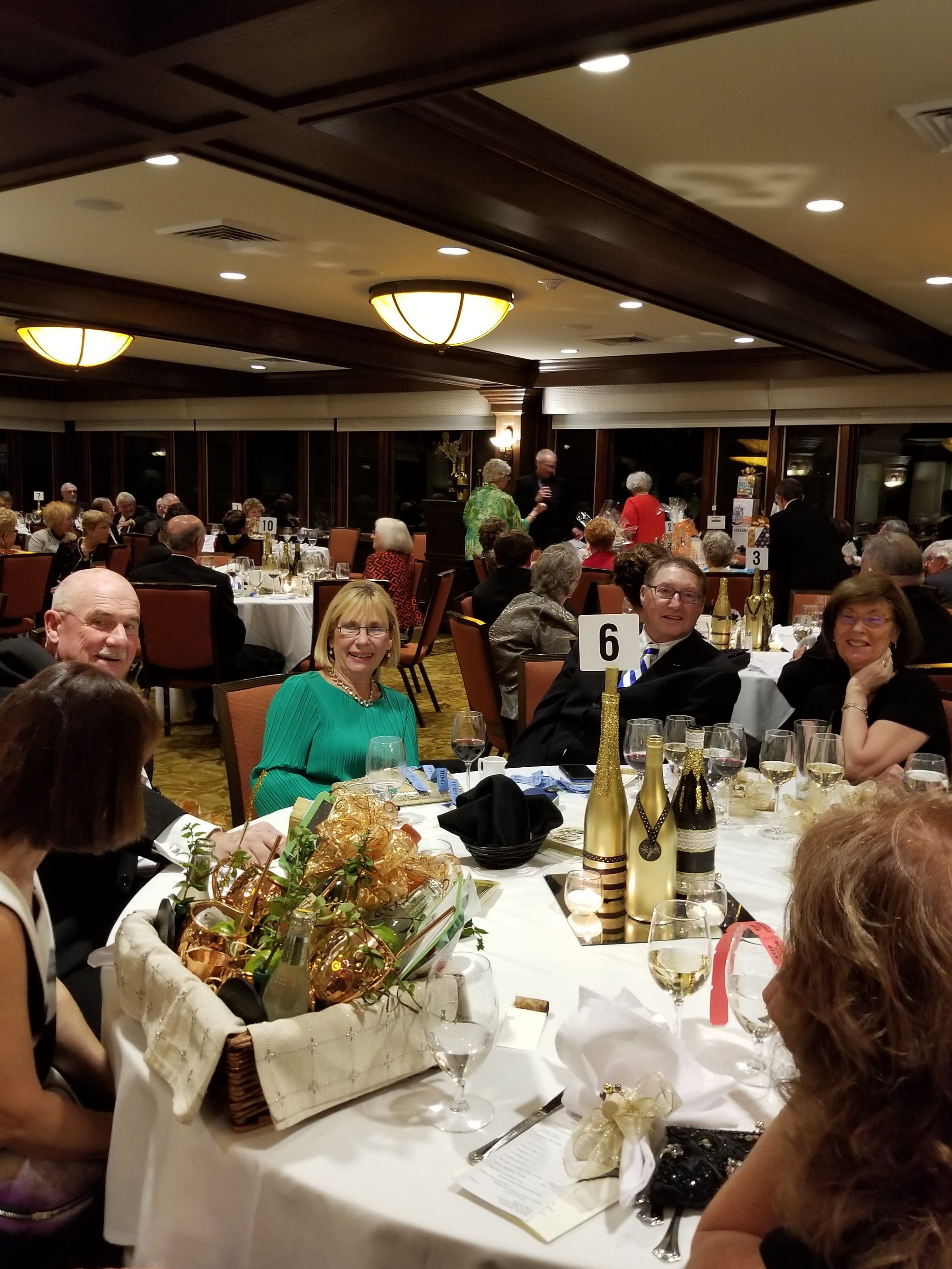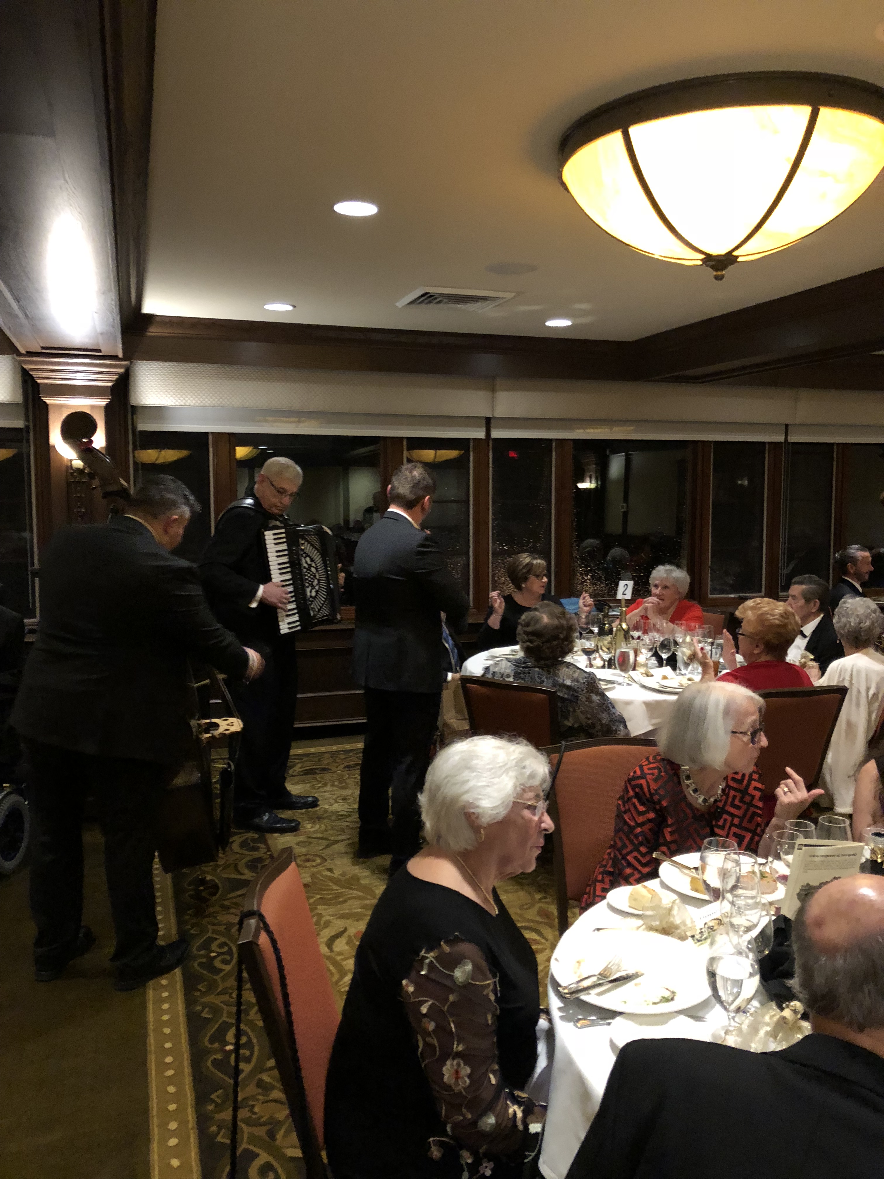 The guests arrived, the first wine was served, the appetizers and the pogácsa were tasty! The evening proceeded as planned: fine wine, intimate atmosphere, lovely table settings, good food, and good company. To add to the ambiance, the reception hour was made all the more memorable by piano music setting the festive atmosphere. The dinner experience was enhanced by the Magyar sounds played by members of Harmonia. Featured wines came from some of the finest wine-growing regions of Hungary: from Tokaj, a 2015 Patricius Furmint and a 2012 Füleky Pallas Late Harvest; from the Mátra region, a Szőke Mátyás, 2016 Pino Gris (Szürkebarát) and from the same winery, a 2017 Irsai Oliver; from Sopron, a Pfneiszl 2014 Távoli Világ Cuvee. There was something to tempt everyone’s palate! Our Honoree for this year’s dinner was the Hungarian Cultural Club of Northeast Ohio, and their president, Mary Jane Molnár.