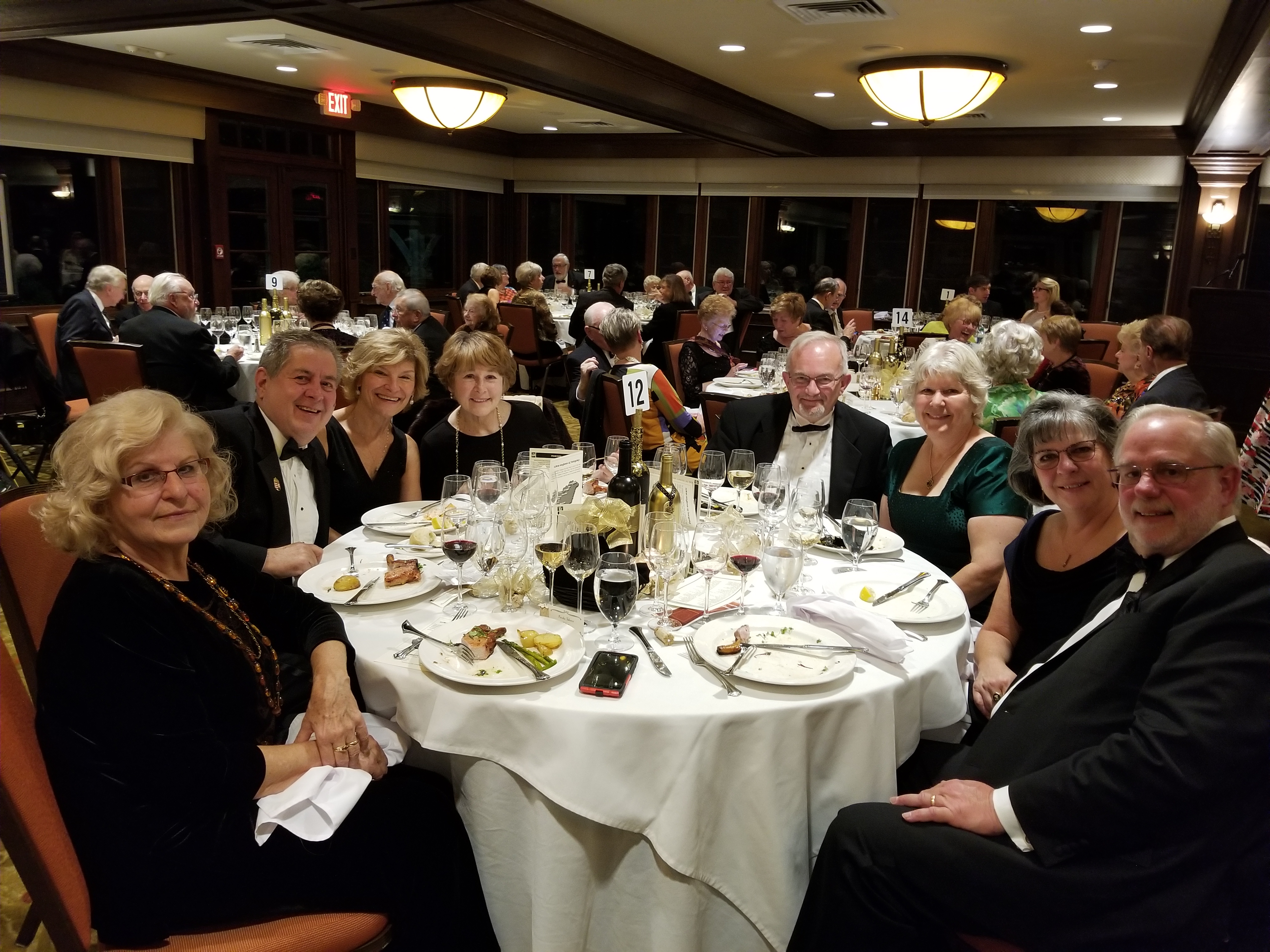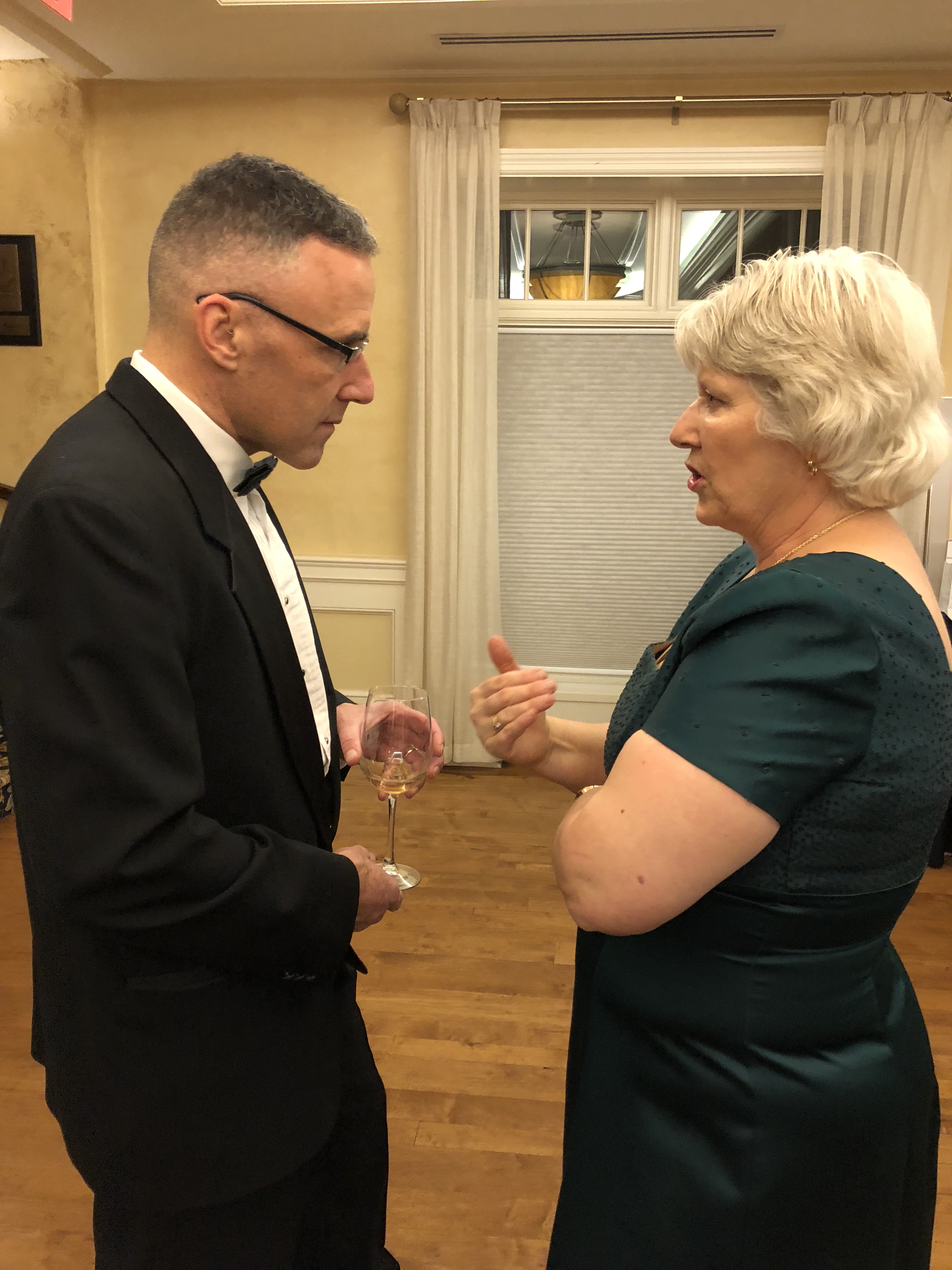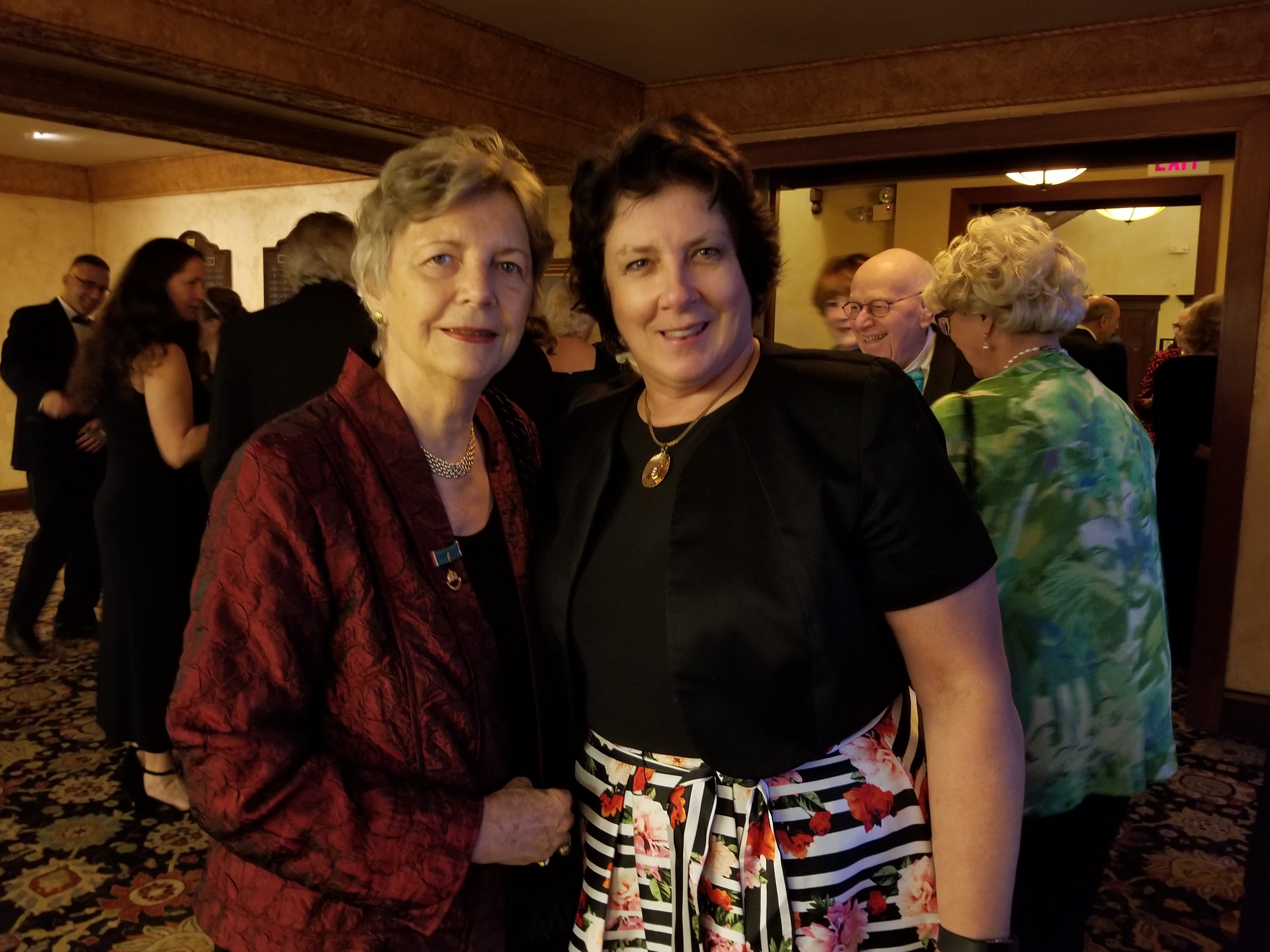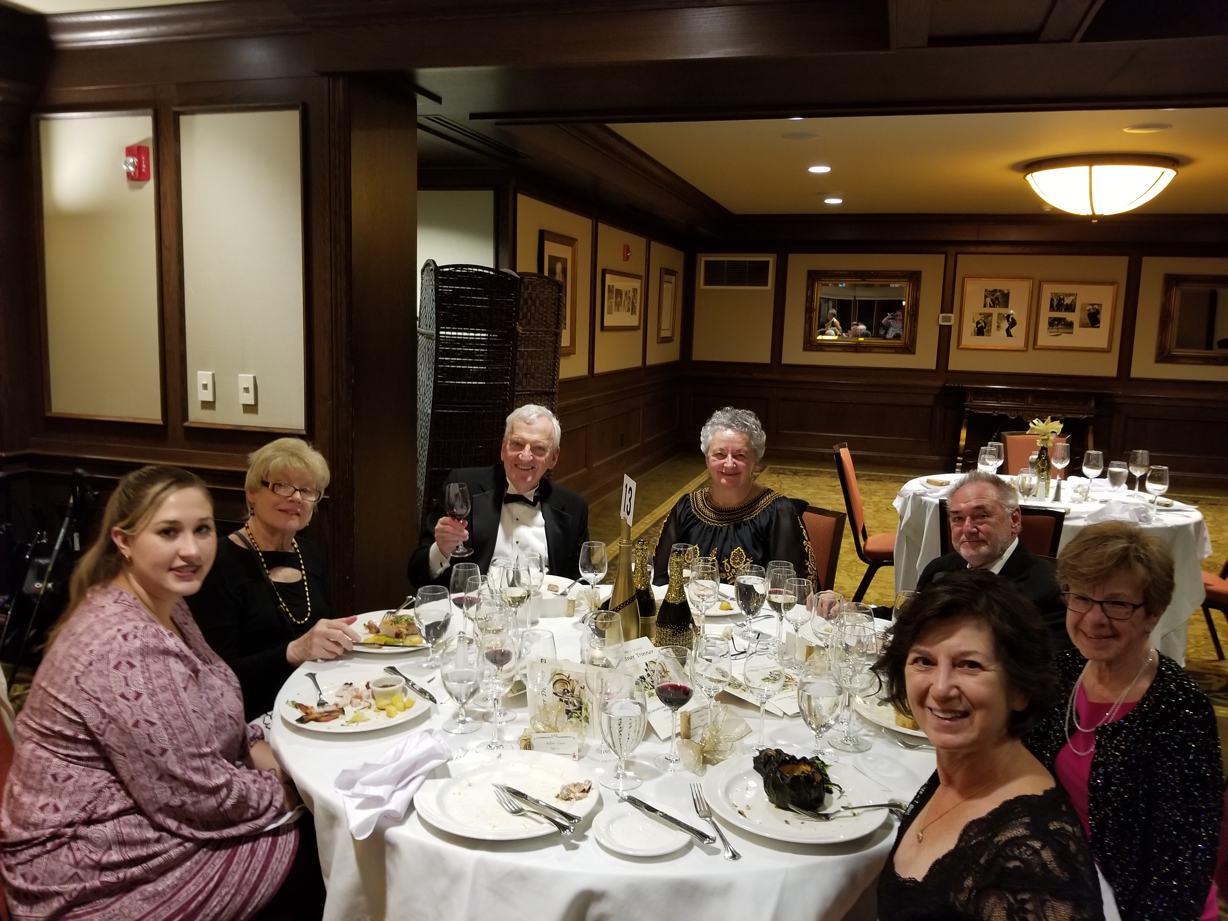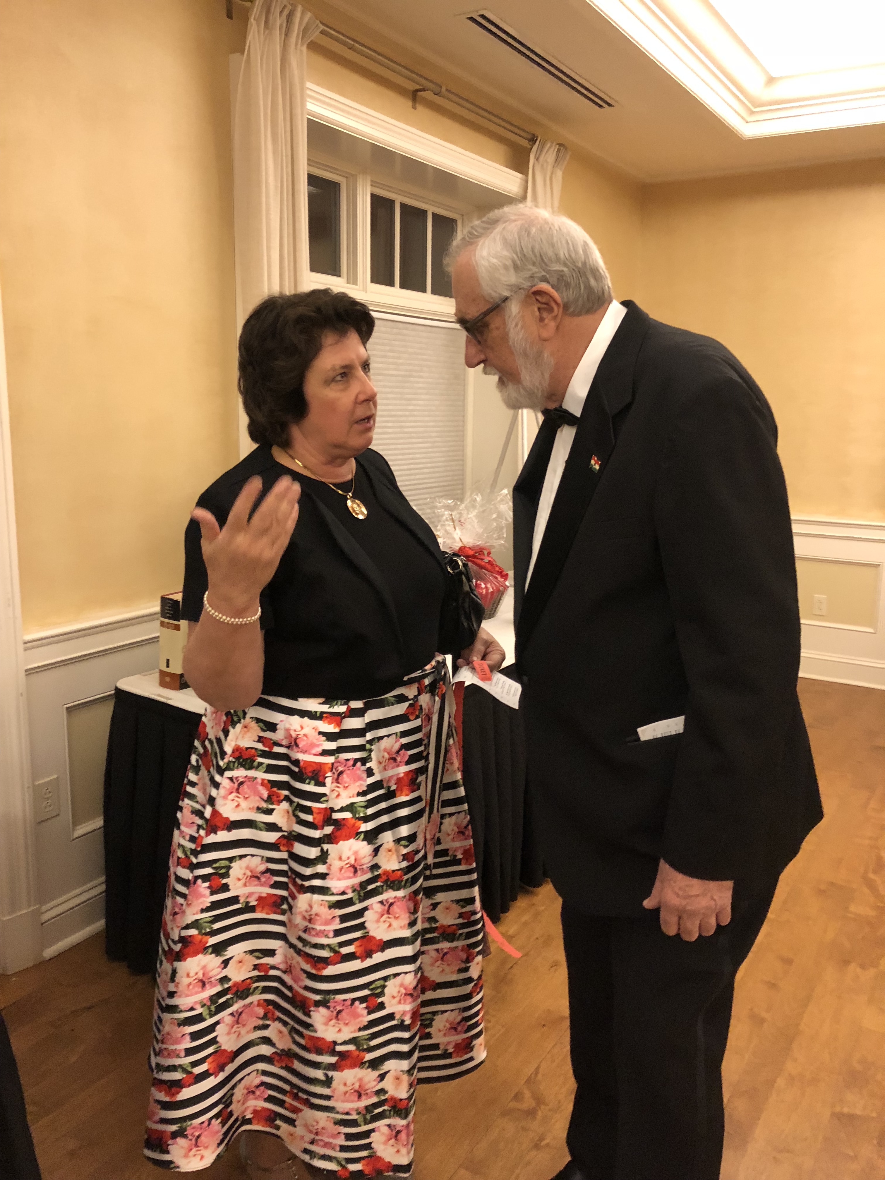 The guests arrived, the first wine was served, the appetizers and the pogácsa were tasty! The evening proceeded as planned: fine wine, intimate atmosphere, lovely table settings, good food, and good company. To add to the ambiance, the reception hour was made all the more memorable by piano music setting the festive atmosphere. The dinner experience was enhanced by the Magyar sounds played by members of Harmonia. Featured wines came from some of the finest wine-growing regions of Hungary: from Tokaj, a 2015 Patricius Furmint and a 2012 Füleky Pallas Late Harvest; from the Mátra region, a Szőke Mátyás, 2016 Pino Gris (Szürkebarát) and from the same winery, a 2017 Irsai Oliver; from Sopron, a Pfneiszl 2014 Távoli Világ Cuvee. There was something to tempt everyone’s palate! Our Honoree for this year’s dinner was the Hungarian Cultural Club of Northeast Ohio, and their president, Mary Jane Molnár.