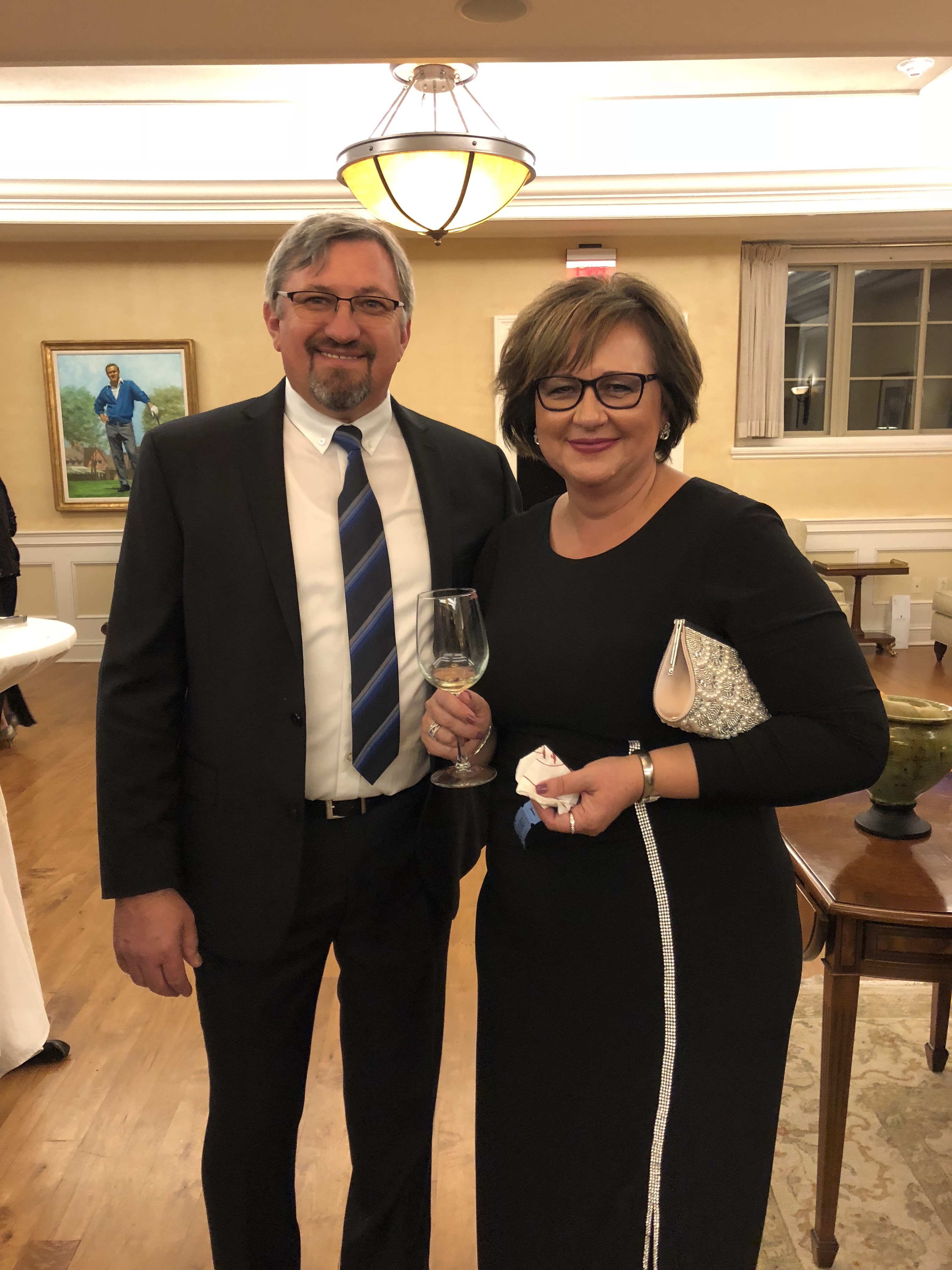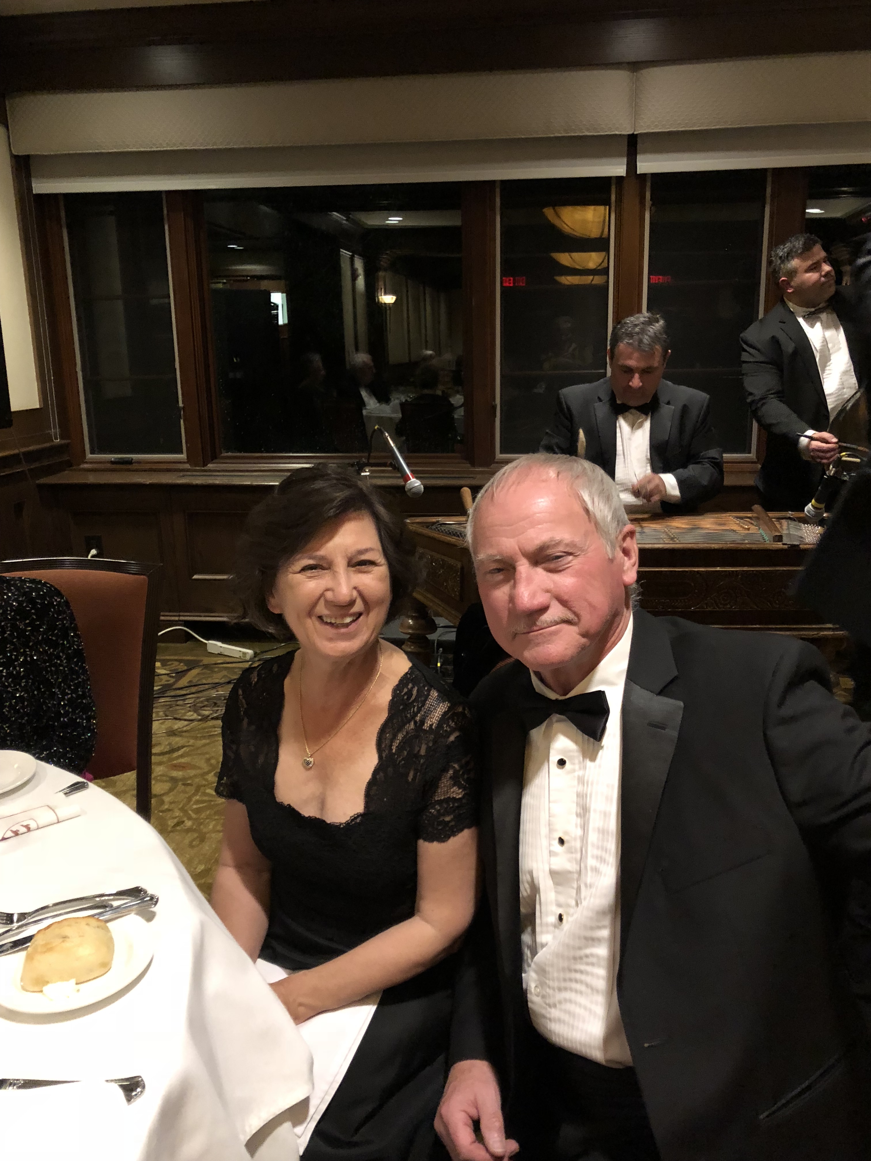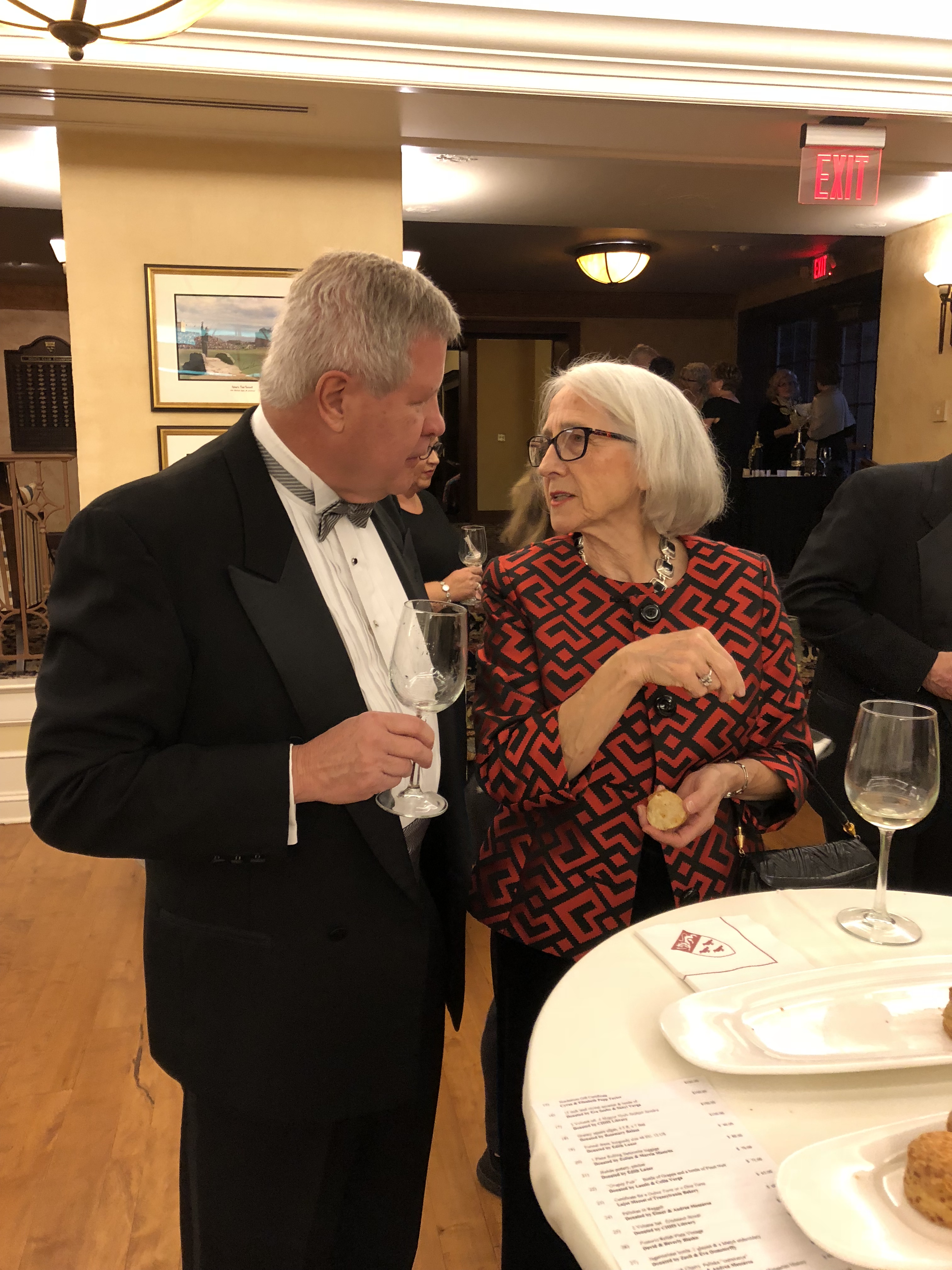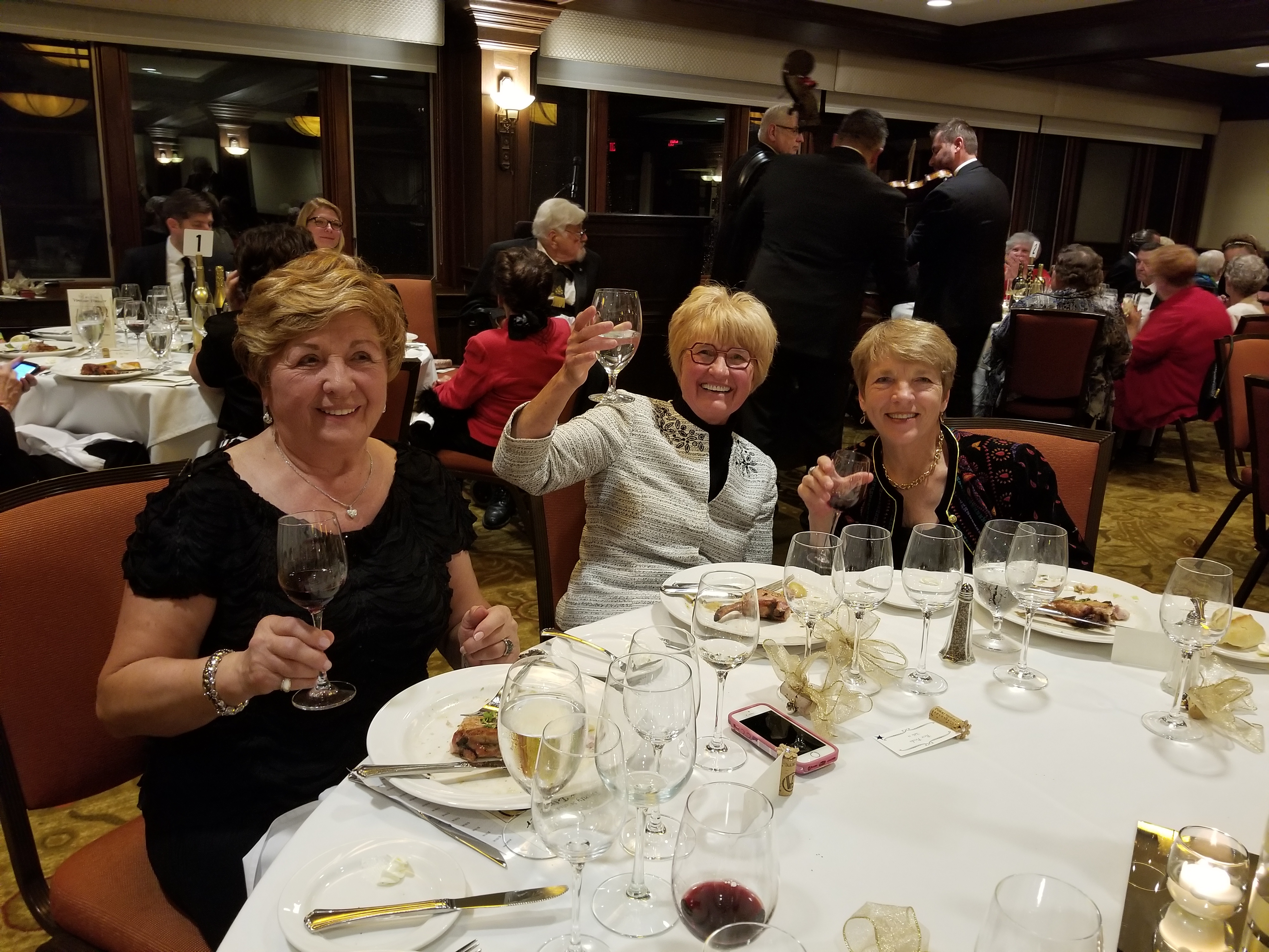 The guests arrived, the first wine was served, the appetizers and the pogácsa were tasty! The evening proceeded as planned: fine wine, intimate atmosphere, lovely table settings, good food, and good company. To add to the ambiance, the reception hour was made all the more memorable by piano music setting the festive atmosphere. The dinner experience was enhanced by the Magyar sounds played by members of Harmonia. Featured wines came from some of the finest wine-growing regions of Hungary: from Tokaj, a 2015 Patricius Furmint and a 2012 Füleky Pallas Late Harvest; from the Mátra region, a Szőke Mátyás, 2016 Pino Gris (Szürkebarát) and from the same winery, a 2017 Irsai Oliver; from Sopron, a Pfneiszl 2014 Távoli Világ Cuvee. There was something to tempt everyone’s palate! Our Honoree for this year’s dinner was the Hungarian Cultural Club of Northeast Ohio, and their president, Mary Jane Molnár.