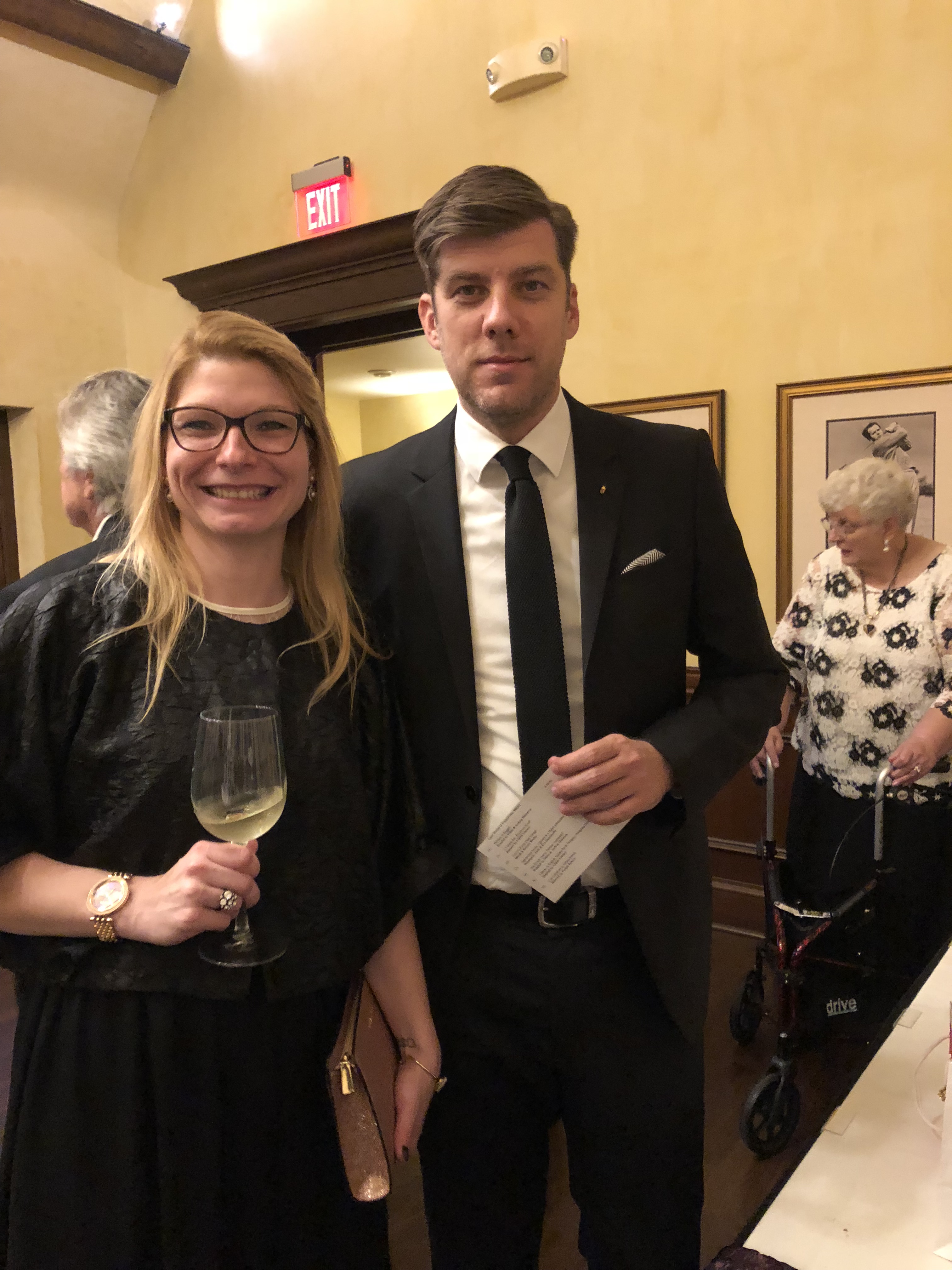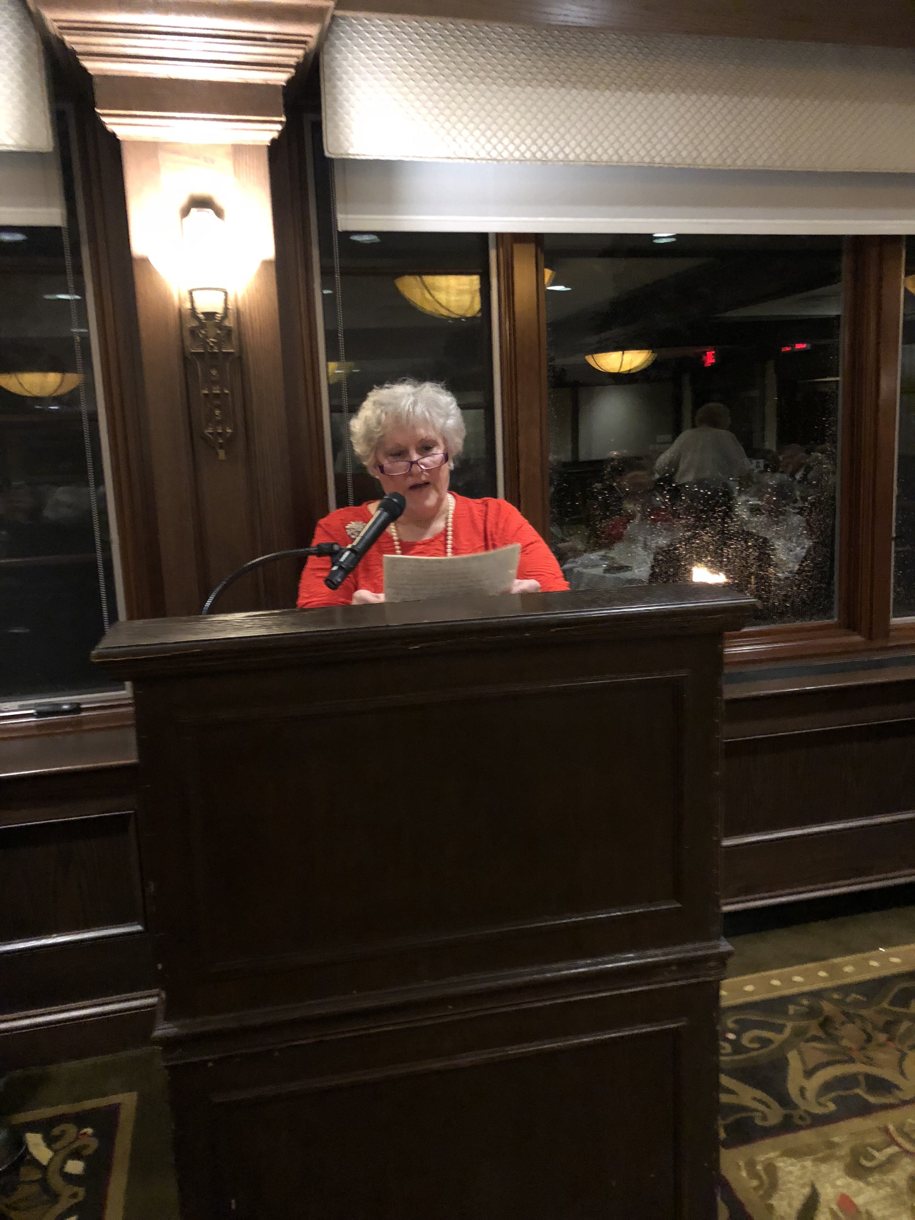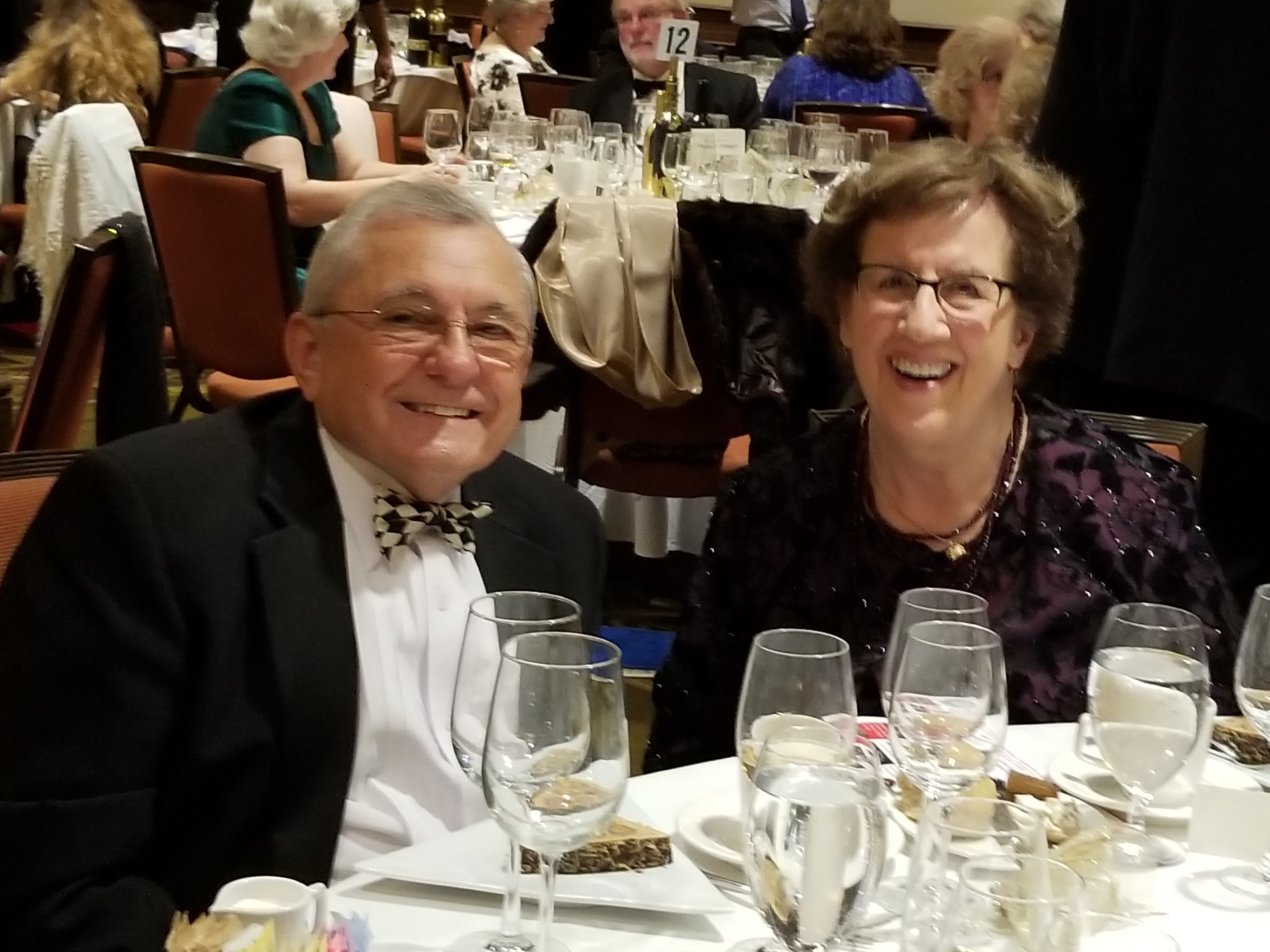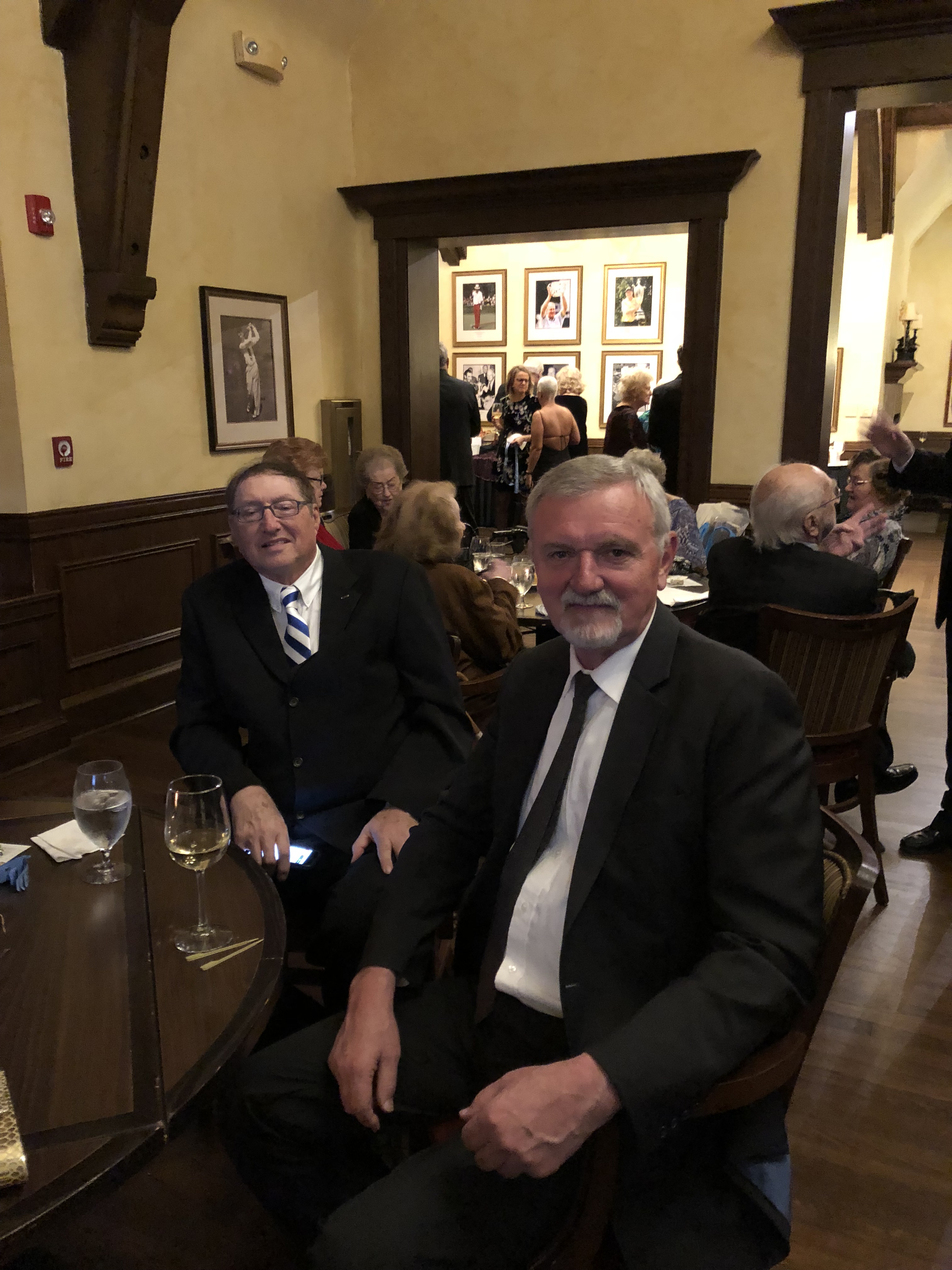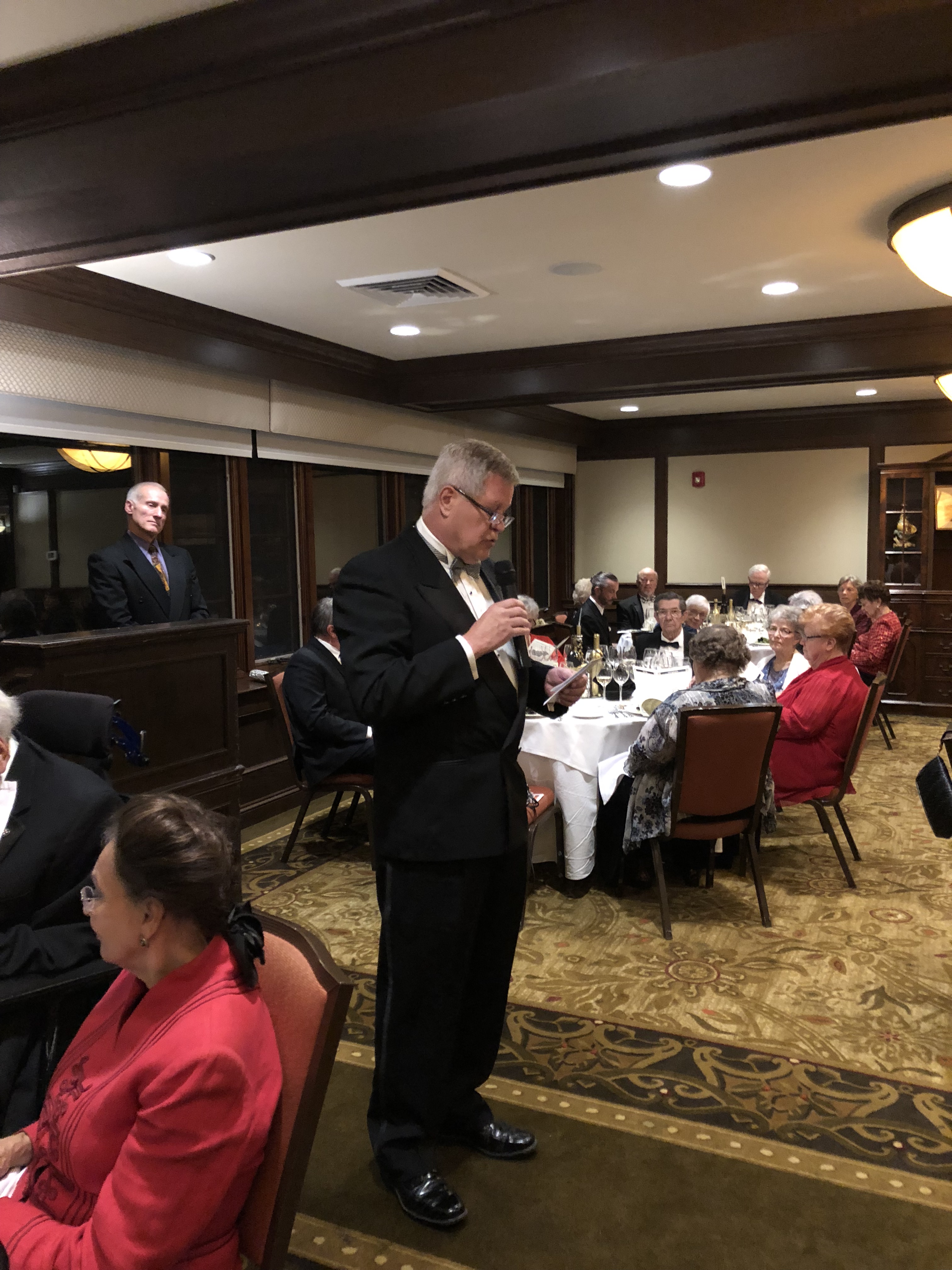 The guests arrived, the first wine was served, the appetizers and the pogácsa were tasty! The evening proceeded as planned: fine wine, intimate atmosphere, lovely table settings, good food, and good company. To add to the ambiance, the reception hour was made all the more memorable by piano music setting the festive atmosphere. The dinner experience was enhanced by the Magyar sounds played by members of Harmonia. Featured wines came from some of the finest wine-growing regions of Hungary: from Tokaj, a 2015 Patricius Furmint and a 2012 Füleky Pallas Late Harvest; from the Mátra region, a Szőke Mátyás, 2016 Pino Gris (Szürkebarát) and from the same winery, a 2017 Irsai Oliver; from Sopron, a Pfneiszl 2014 Távoli Világ Cuvee. There was something to tempt everyone’s palate! Our Honoree for this year’s dinner was the Hungarian Cultural Club of Northeast Ohio, and their president, Mary Jane Molnár.