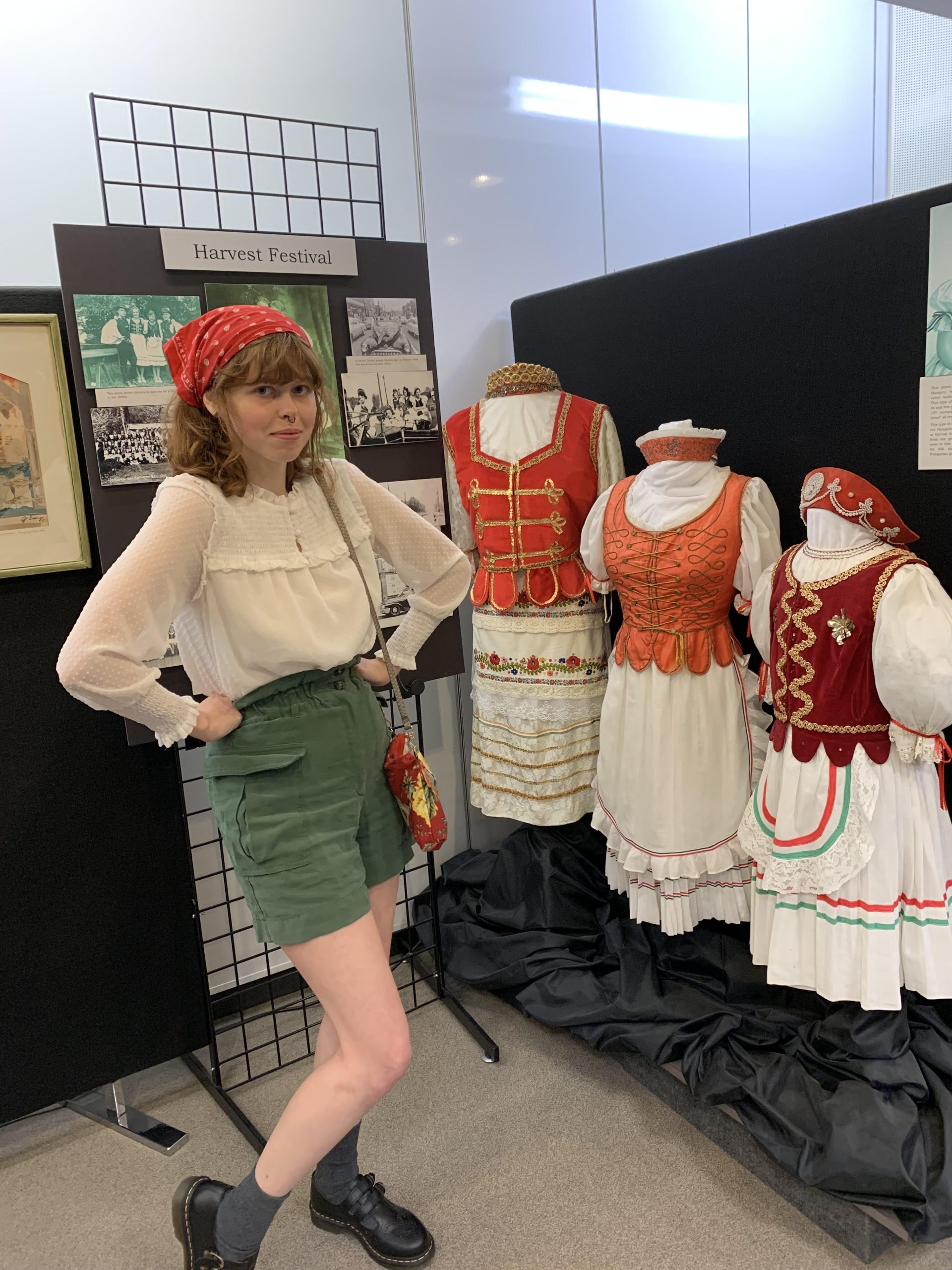 It is always such a great pleasure to welcome a group to our Museum. On April 20th, residents from the Rose Senior Living, in Avon, Ohio visited and toured the Museum. We had a great time together as we explored the treasures in our collection of artifacts and costumes, as well as sharing highlights of Hungarian history and the Hungarian immigrant experience in Northeast Ohio. Some of our visitors had Hungarian ancestors, many did not. But one thing we all had in common was an interest in the history and culture that was on display at the Museum. We even had the chance to welcome a lady who had just recently celebrated her 100th birthday!Happy birthday Irene Yuhasz!! She was three months old when her parents left with her from the county of Sopron! (Thanks to Brigitta Toth, wife of Rev. Peter Toth from Lorain, whose smart phone camera is the source of the photos!)