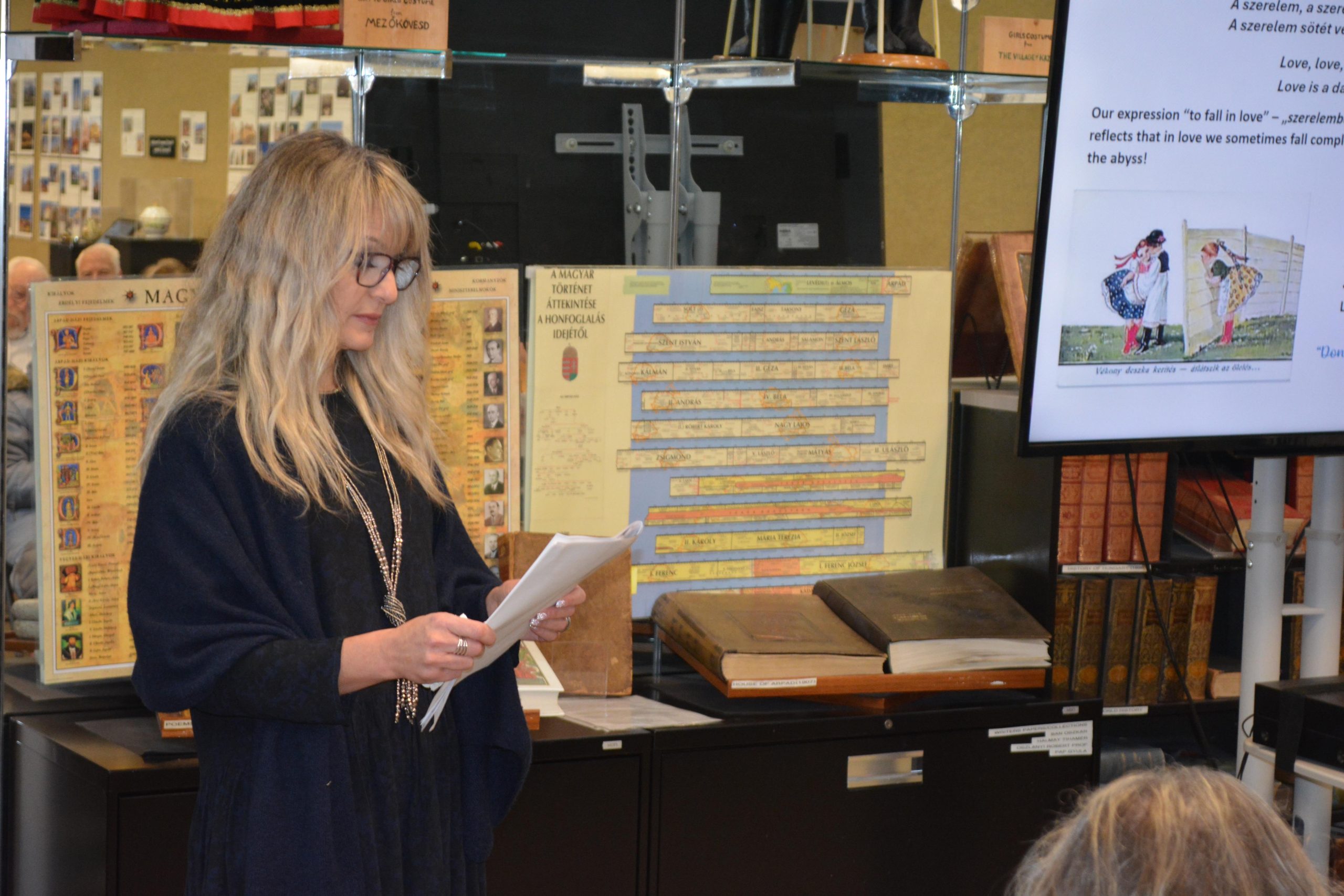 THANK YOU DR. MARTHA PERESZLÉNYI-PINTÉR FOR A FABULOUS PROGRAM!! This program was made for a live audience and we enjoyed how Márti enriched her presentation with audiovisuals from YouTube, live poetry recitations, and a stunning handout. If one ever had a doubt about how beautifully magyar literature (in all its forms) brings to life the spirit of romance, you certainly were convinced after the program that we Hungarians have a sentimental streak that at times is elevated to a very high level! This program would not have had its impact without the beautiful poetry recitations by ZSUZSA AND LORÁND CSIBI! Poetry recited live has an added dimension of drama and emotion, and we appreciated their interpretations of the mood and topic of the poems.