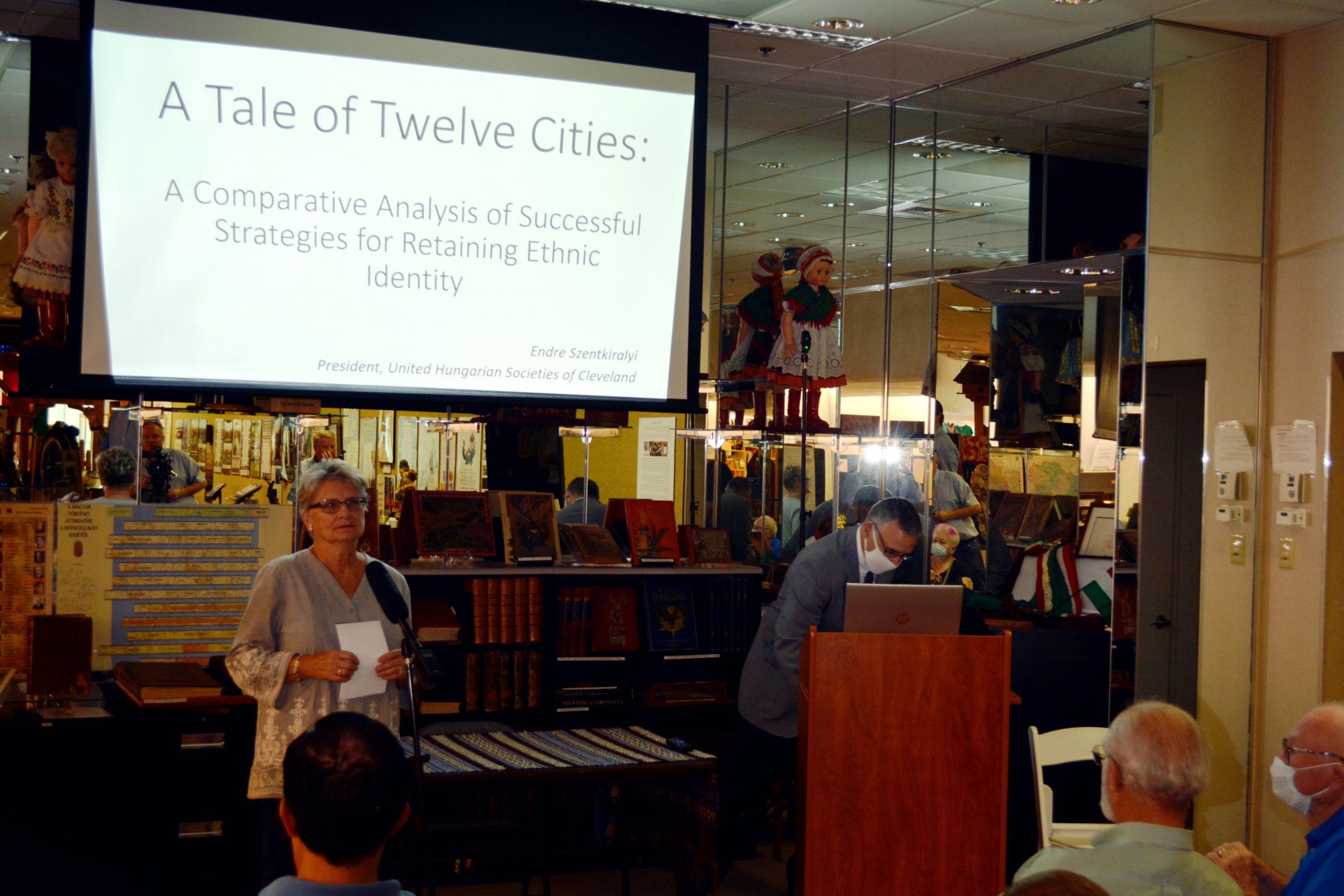 Our first “in Museum” program since the pandemic was well attended, both in person and on Zoom. Dr. Endre Szentkirályi gave a compelling presentation summarizing Hungarian community life in 12 cities. He served up some excellent data, along with photo images, providing a valuable look into the way various magyar communities operate in cities throughout the United States and Canada. He also provided a list of additional cities that have Hungarian communities. If you ever wanted to know how the Hungarian diaspora in North America operates, or what percentage of these communities speak Hungarian, and how many institutions they support, this was the perfect program!