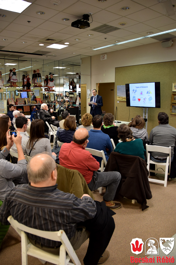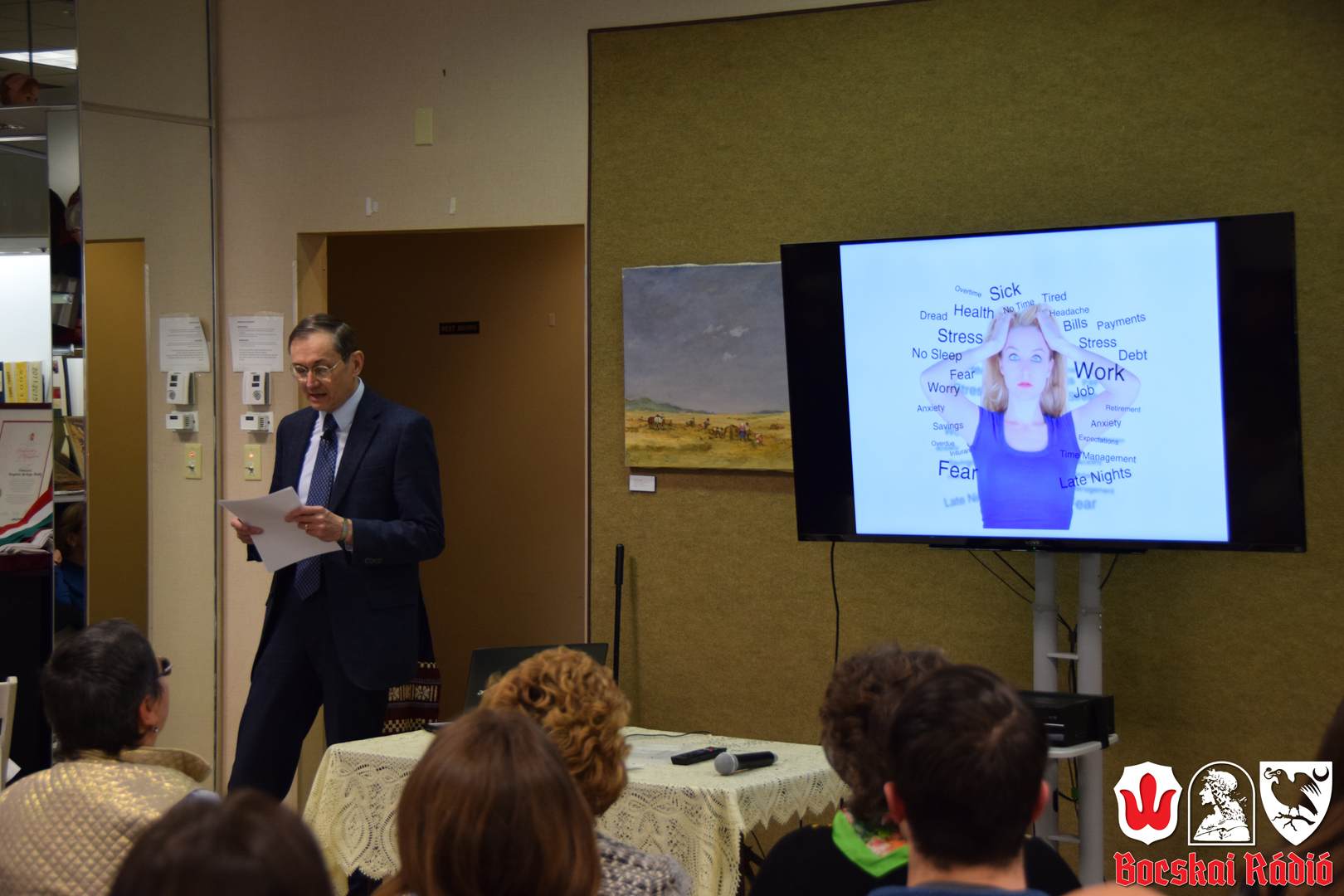 Our March 10th presentation by Dr. John Nádas was on a topic that hits home to most people today, who with their busy and often frantic lives, suffer periodically from the effects of stress. The fact that stress directly impacts our health was researched and first explained by Dr. János Selye, an endocrinologist who was able to scientifically demonstrate that there is a link between many health problems that modern humanity deals with and the stresses of everyday life. Dr.Nádas presented Dr. Selye’s personal life and his professional life in the “first person” mode, which made for a highly informative as well as entertaining presentation. The program was well-received, and the audience had the opportunity to ask questions and comment on this very pertinent topic.