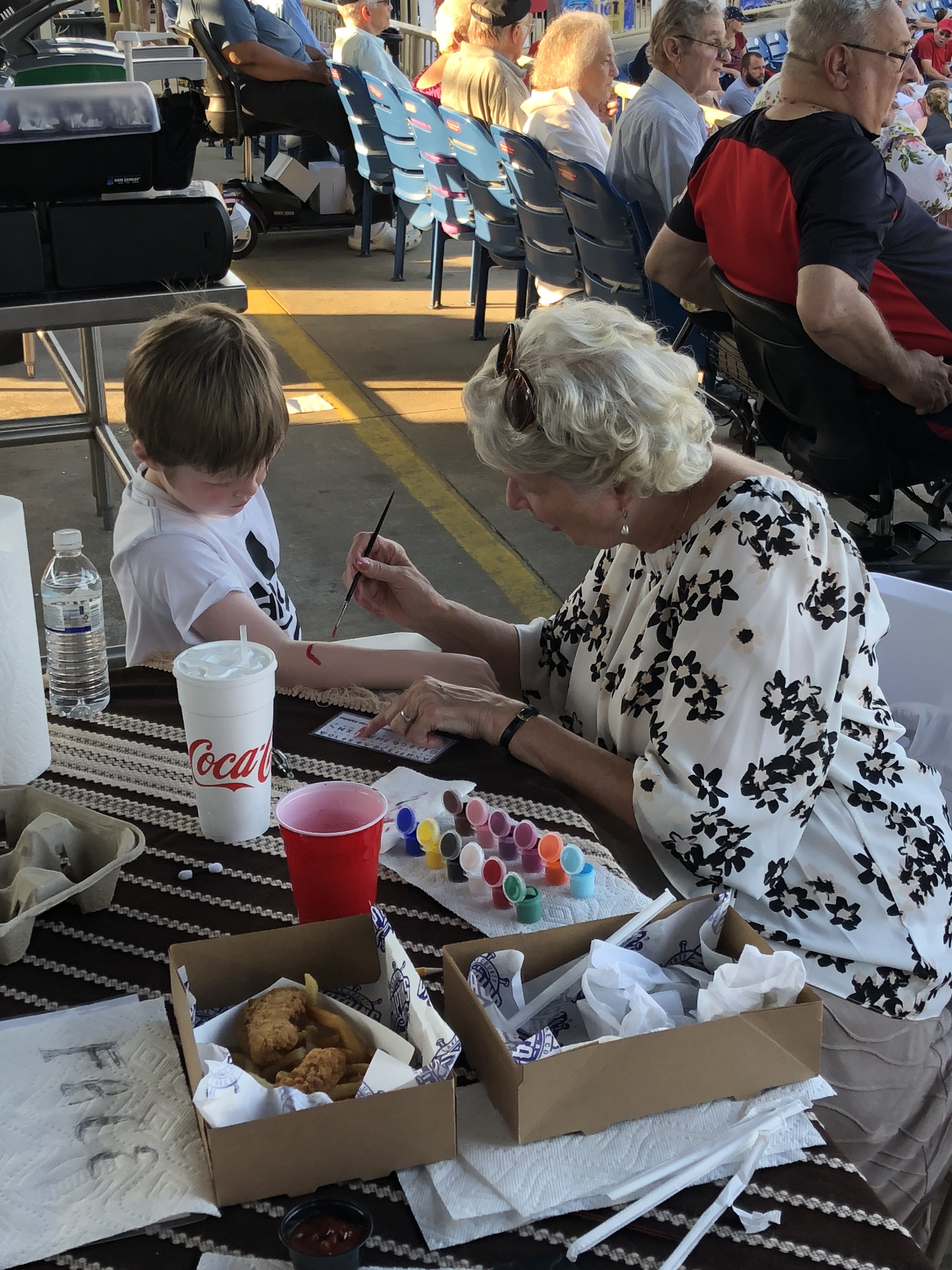 The end of June saw volunteers from the Museum attending the Lake Erie Captains Hungarian Heritage Night at the Ballpark festivities. We have contributed to this great fusion of the American past-time with Magyar culture by manning a face painting table…as the children come by, we decorate their cheeks and arms with Hungarian folk motifs as well as words in “rovás írás”, the ancient script of the Magyars. This gives us an opportunity to talk about our Museum and the work we do, and in turn, many people end up sharing with us their Hungarian heritage.